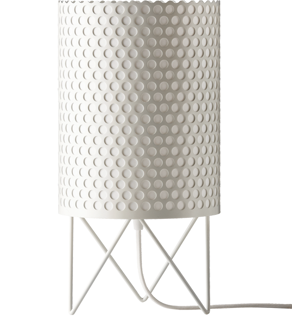 Die Pedrera ABC Tischleuchte, entworfen von Designer Barba Corsini und Joaquim Ruiz Millet, besteht aus einem gezackten Dreier-Fuß, aus dem sich ein runder Lampenschirm erhebt. Außen ist der gelochte Metallschirm lackiert, innen Kunststoff. Die Pedrera ABC Tischleuchte ist in verschiedenen Farben erhältlich. Das Kabel ist textilumwoben und rundet die gelungene Leuchte somit perfekt und stimmig ab.