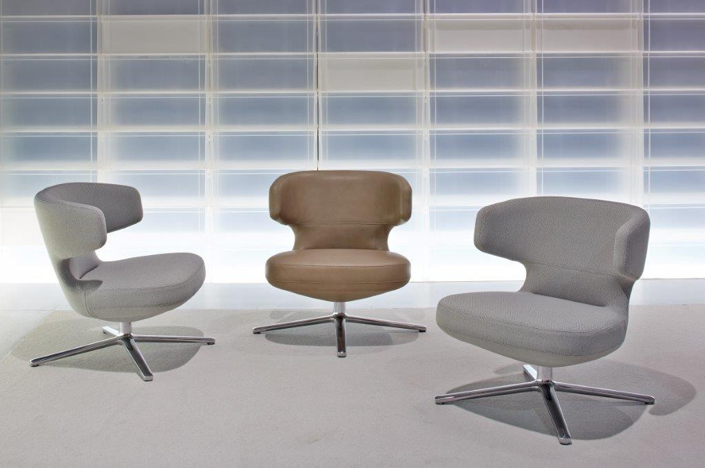 drehbarePetit Repos Sessel von Vitra verfügt über eine integrierte und flexible Rückenanbindung.