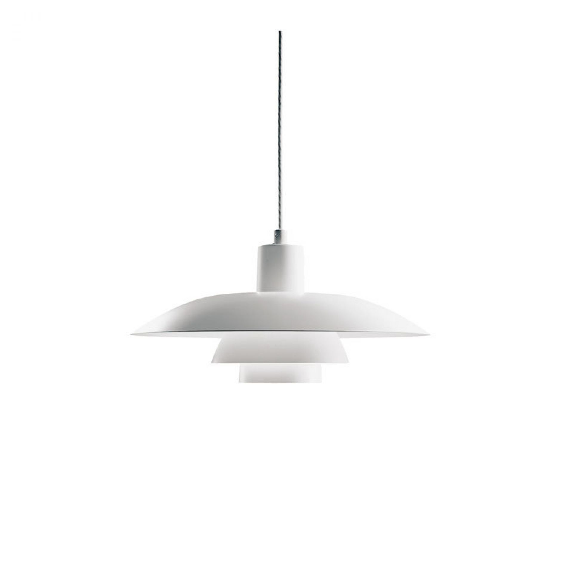 Das Modell PH 4/3 Pendelleuchte gehört zur 30 Modelle umfassenden Serie mit dreiteiligem Schirm, von denen drei Außenleuchten sind.