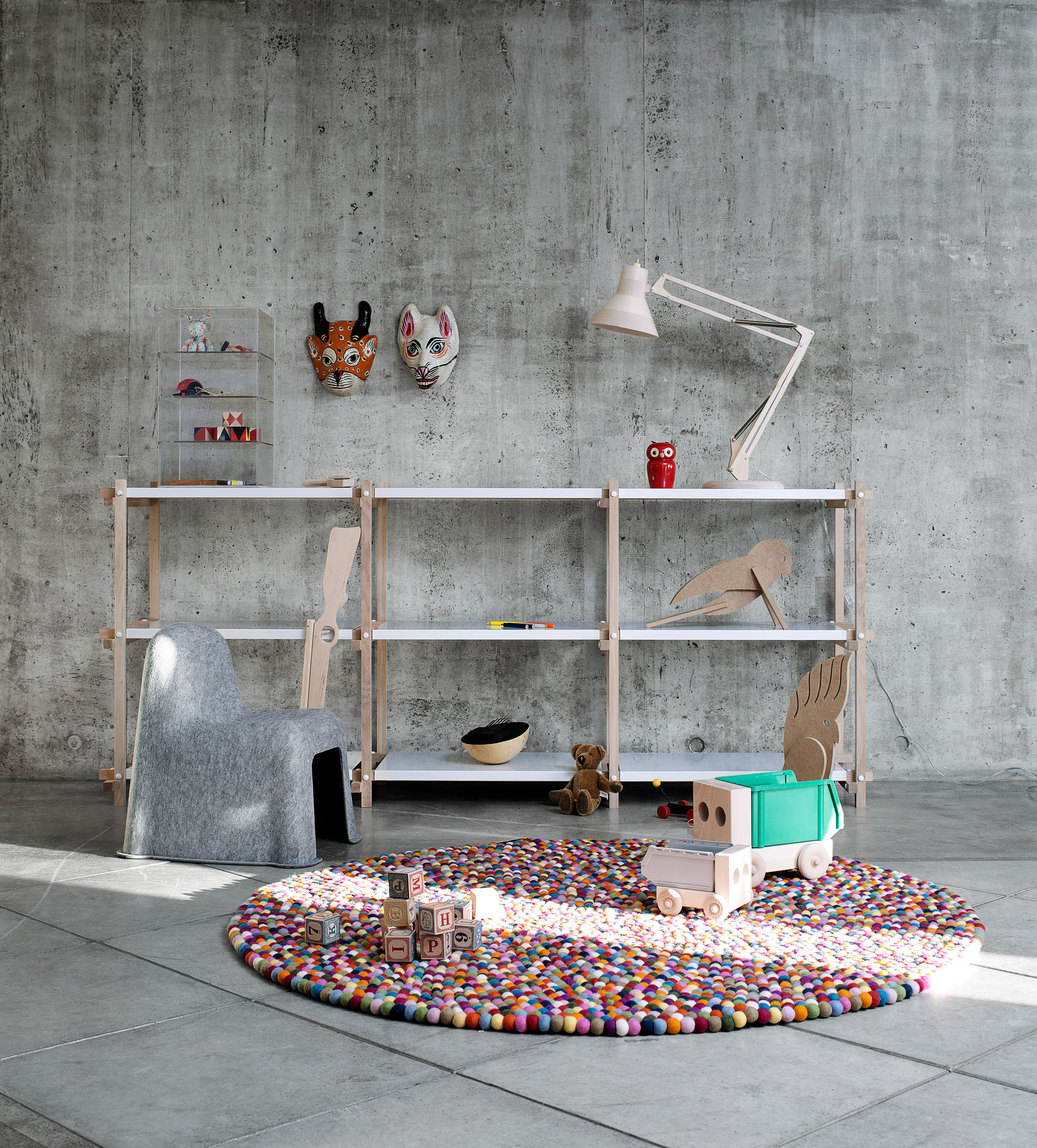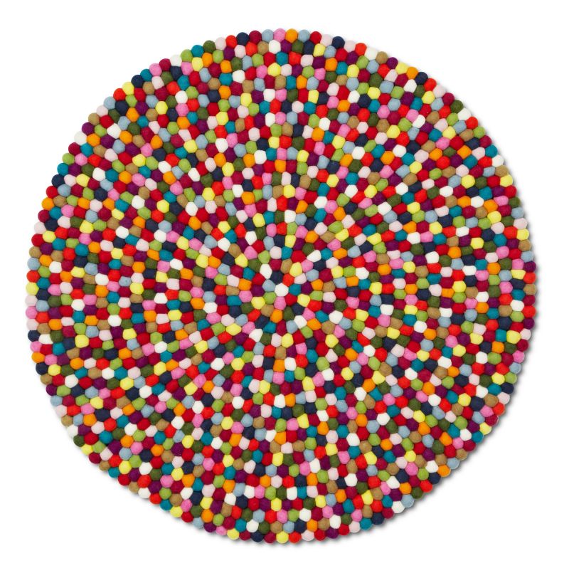 Genauso bunt wie der Teppich Pinocchio, der sich aus verschieden farbigen Filzkugeln zusammensetzt und ein großflächiges Mosaik bildet. Nicht nur im Kinderzimmer, sondern überall, wo farbige Fröhlichkeit geschätzt wird, ist Pinocchio von Hay die richtige Wahl.
