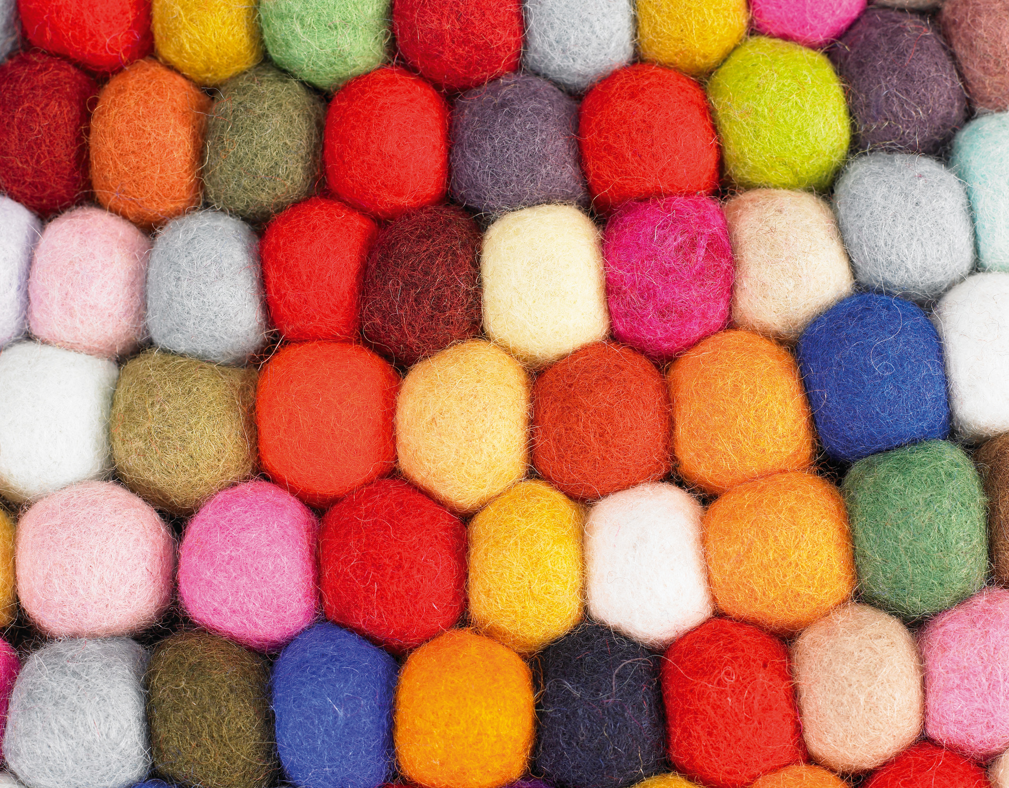 Hay lässt seinen Pinocchio Teppich in Indien und Nepal anfertigen, wo man viel von der traditionellen Technik des Teppichknüpfens versteht. Die Kugeln werden einzeln von Hand gefilzt und anschließend mit Schnüren zusammengenäht.