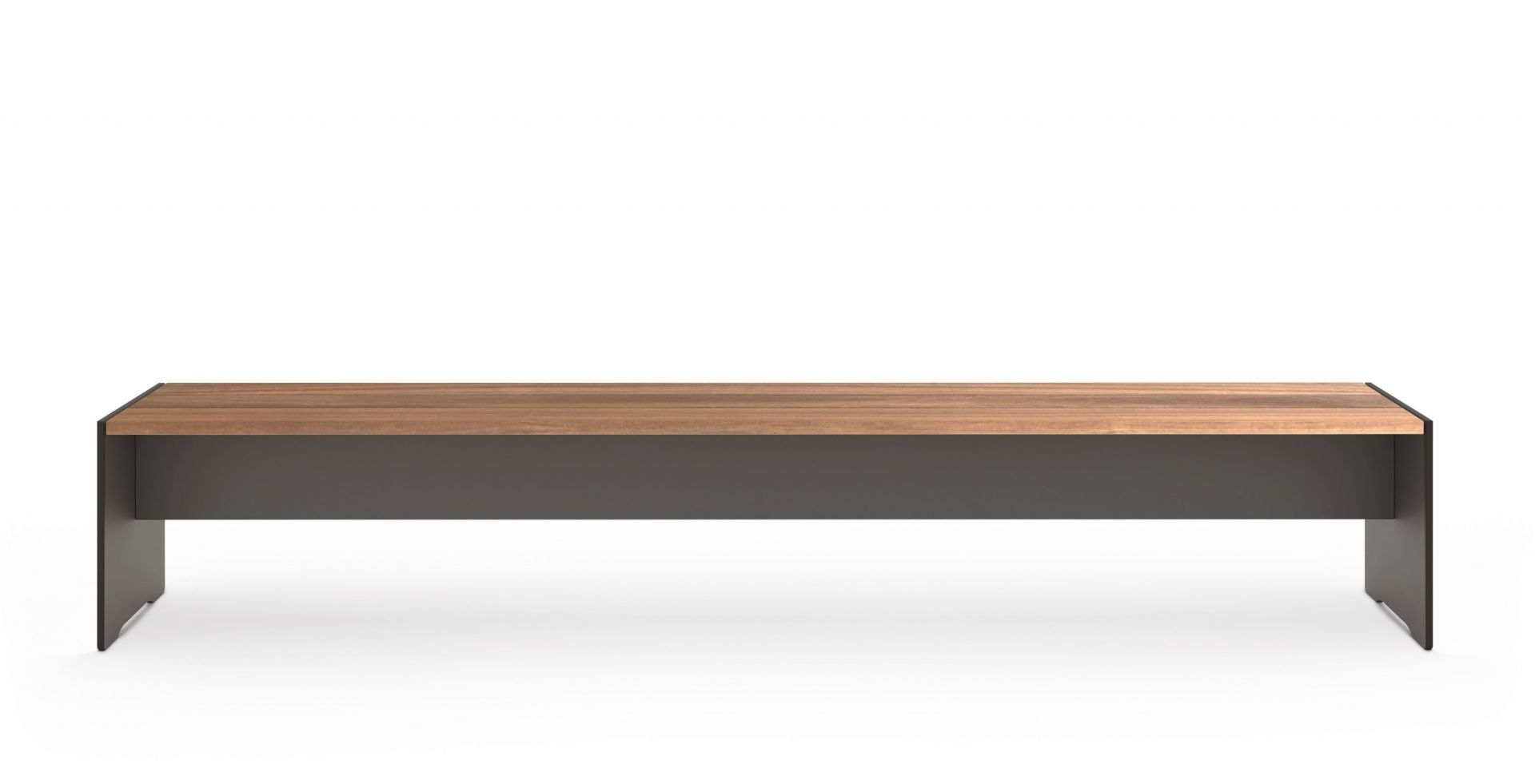 Der Riva Wood Tisch hat die Maße B 250 x T 100 x H 72 cm. Die beiden Bänke sind jeweils 245 cm breit, 43 cm tief und 43 cm hoch und können platzsparend unter den Tisch geschoben werden.