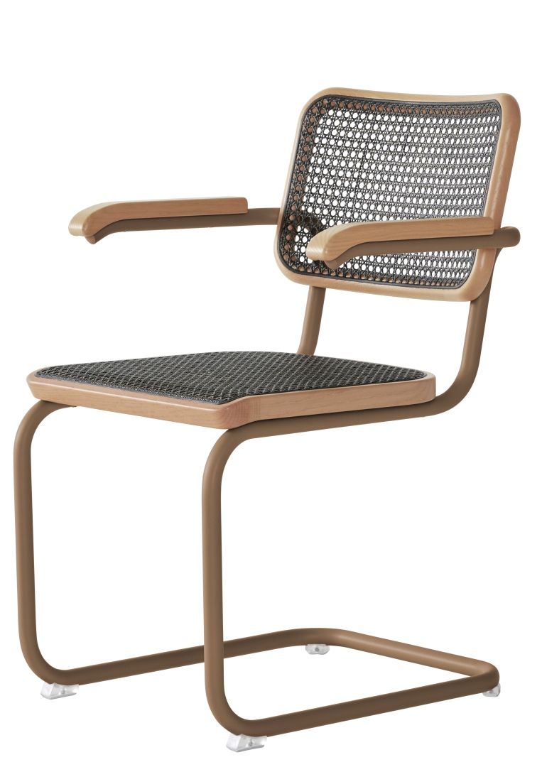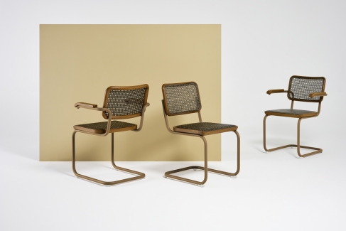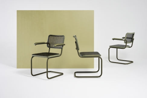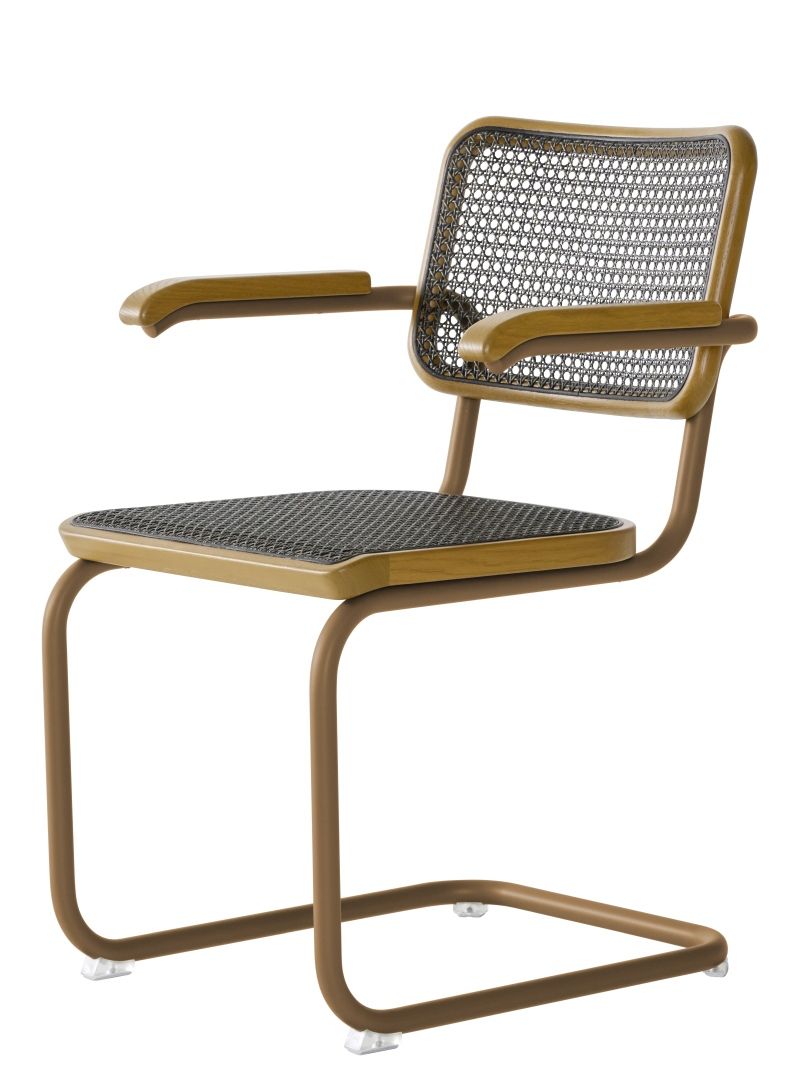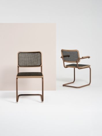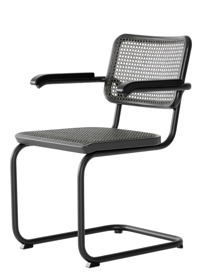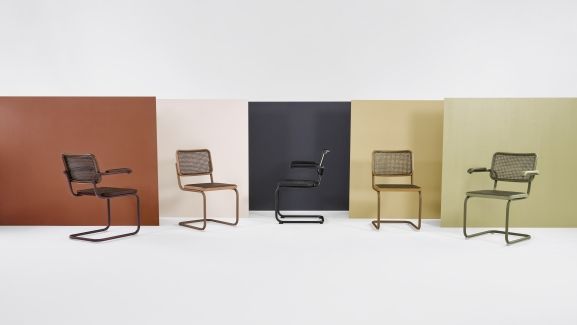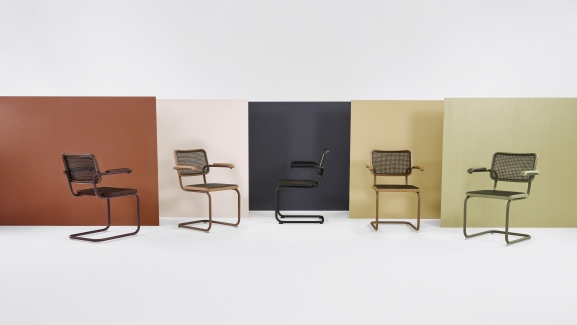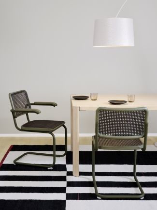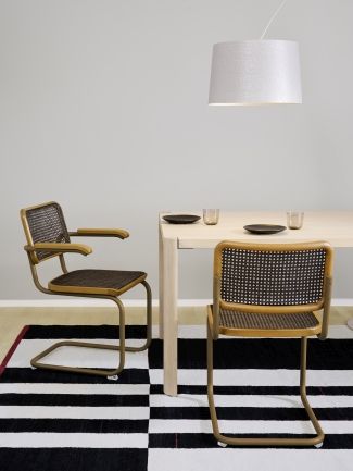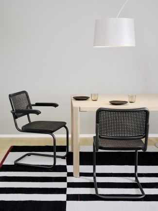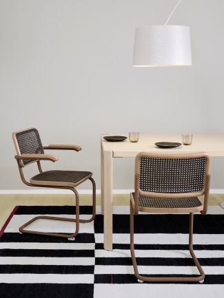 Ob kompromisslos moderne Einrichtung oder vielseitiger Mix – der S 64 Freischwinger von Thonet ist in vielen gestalterischen Welten zu Hause. Der Freischwinger zählt zu den bekanntesten Stahlrohr-Klassikern. Sitz- und Rückenlehne aus gebogenem Massivholz mit Rohrgeflecht stehen für Tradition, während das innovative Gestell Gegenwart und Zukunft repräsentiert. Entworfen wurden der S 32 und S 64 von Marcel Breuer 1928 in Berlin. Thonet produziert sie bereits seit 1930.