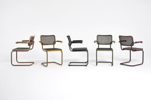 Marcel Breuer absolvierte von 1920 bis 1924 eine Lehre zum Tischler am staatlichen Bauhaus Weimar. Dort übernimmt er ab 1925 die Leitung der Tischlereiwerkstatt. Was als Privatprojekt begann, wurde schnell Teil des Bauhaus Dessau: seine wegweisenden Möbelentwürfe aus Stahlrohr. Breuer verlässt 1928 das Bauhaus und sucht engeren Kontakt zur Industrie, unter anderem zu Thonet. Er lässt sich in Berlin als Architekt nieder und arbeitet vorwiegend im Bereich Innenarchitektur, bevor er einige Jahre für Thonet tätig ist. So entsteht 1930/31 eine umfassende Stahlrohrkollektion. Breuer verlässt Deutschland über Budapest, London und landet schließlich 1937 in den USA. Zu dieser Zeit entwickelt er Sperrholz- und Aluminiummöbel. Durch die Vermittlung von Walter Gropius wird Breuer Dozent und später sogar Professor für Architektur an der Harvard University in Cambridge. Ab 1941 betreiben er und Gropius gemeinsam ein Architekturstudio. Breuer gilt als eine der zentralsten Figuren der Architektur- und Designgeschichte.