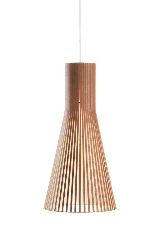 Die längliche Pendelleuchte 4200 von Secto Design hat einen Durchmesser von 30 cm und besitzt eine Höhe von 60 cm.