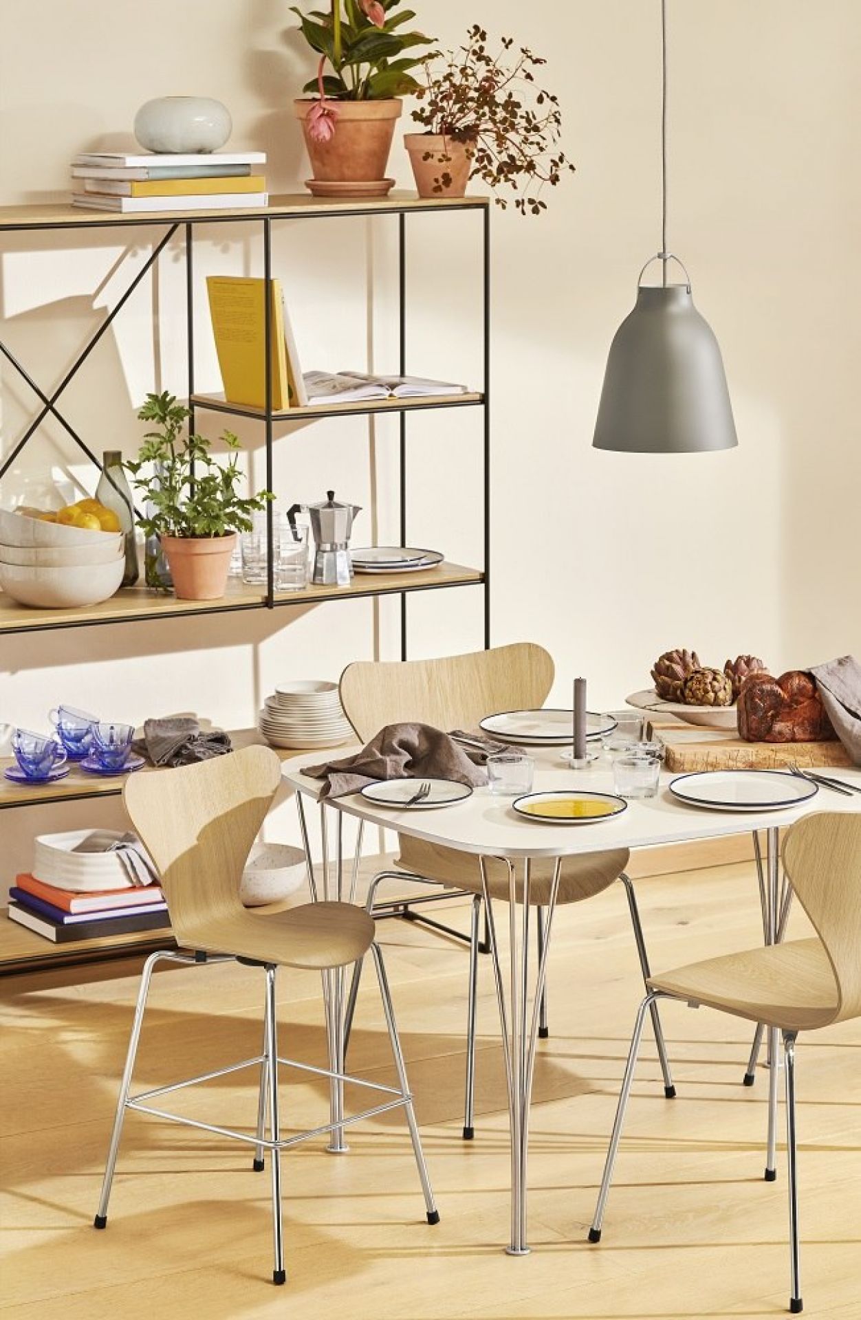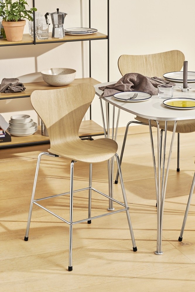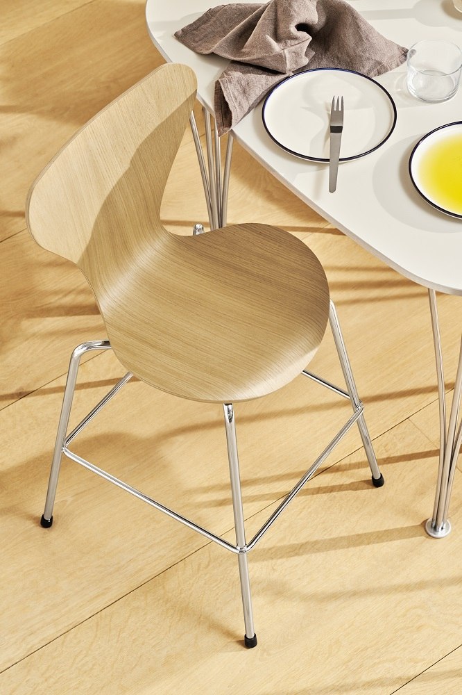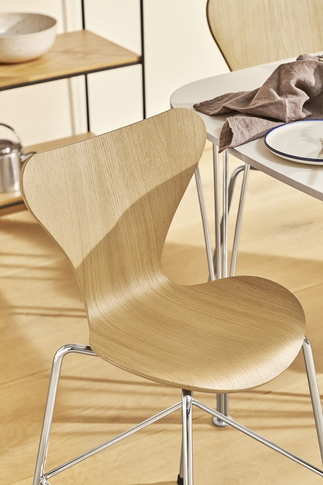 Als Ikone der Möbelgeschichte verdient die Serie 7 von Fritz Hansen besondere Beachtung – so verwundert es nicht, dass schon die Kleinsten an das formschöne und legendäre Design herangeführt werden. Mit dem Serie 7 Junior Kinderhochstuhl können die Kleinen einfach beim Abendessen mit am Tisch auf einem echten Designstuhl für Kinder sitzen.