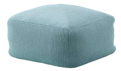 Blauer, quadratischer Divine Outdoor Hocker von Cane-Line mit Strickmuster für Garten und Terrasse.