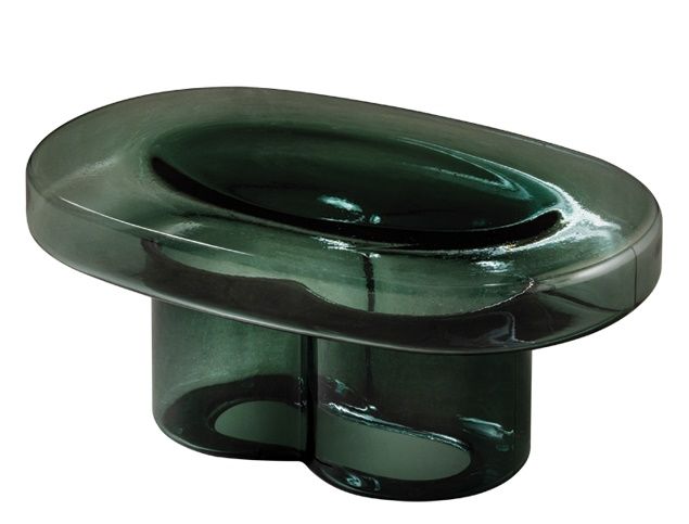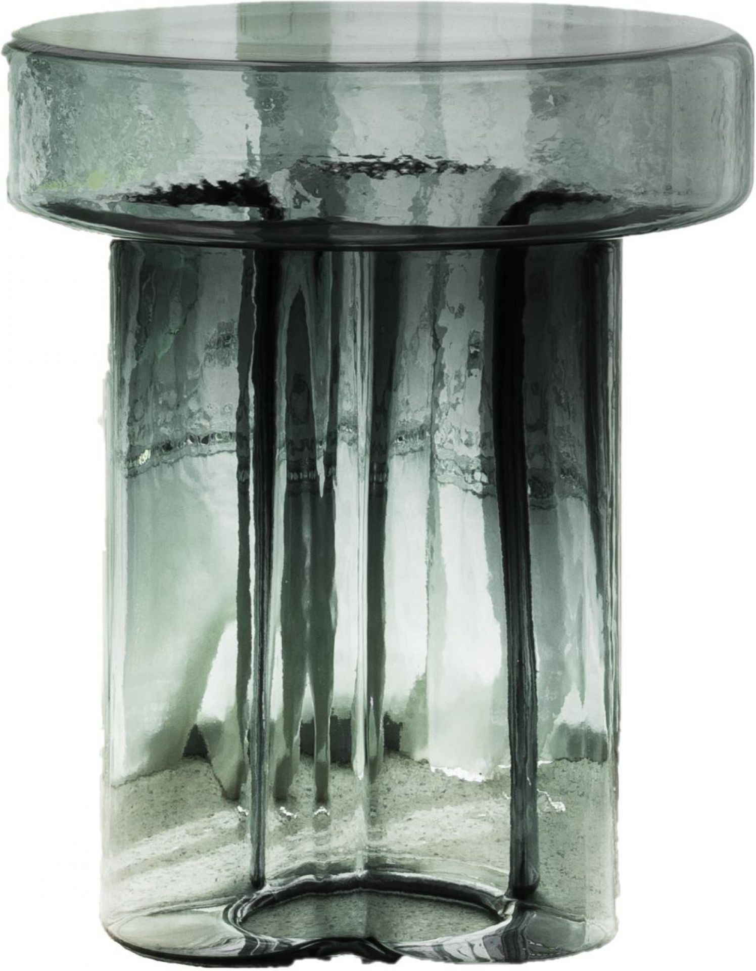 Der Soda Beistelltisch von Miniforms ist ein Glanzstück der Glasbläserkunst! Er wird von drei Glasmachermeistern geblasen, ausgezogen und geformt. So erhält er sein einzigartiges Volumen. Mit seiner harten und gehämmerten Oberfläche wird seine klare Transparenz leicht getrübt, was ihm eine einfache und handliche Ästhetik verleiht. So wird er von einem Industrieprodukt zu einem Designstück mit künstlerischem Wert.