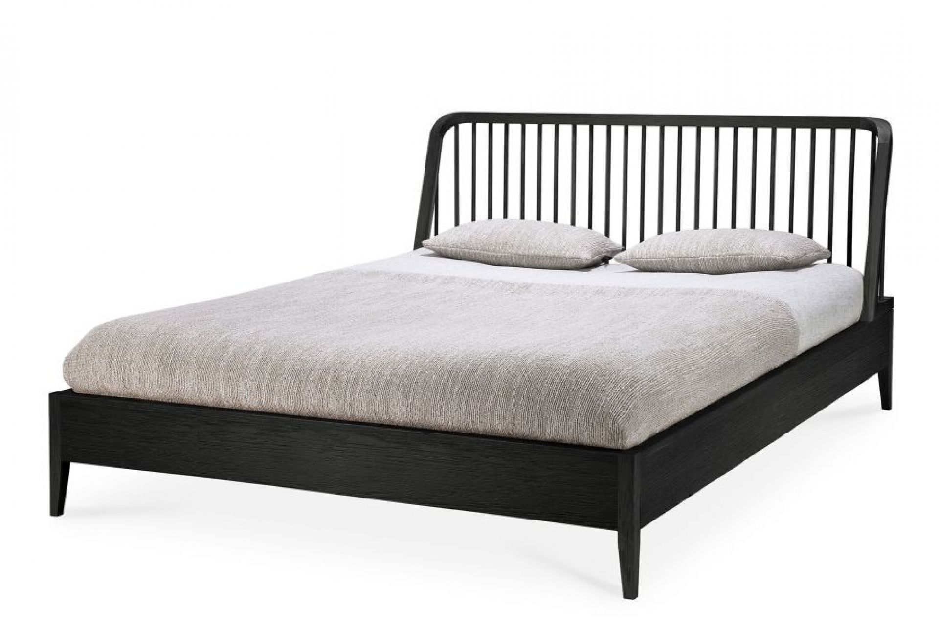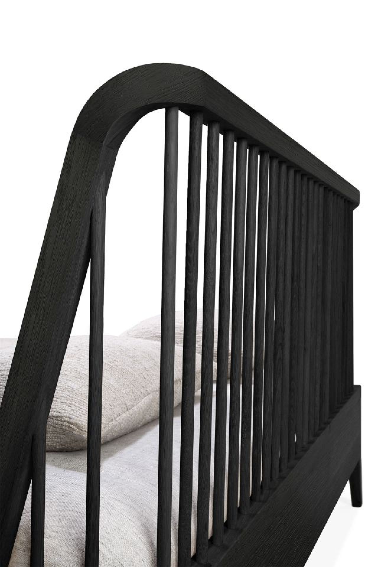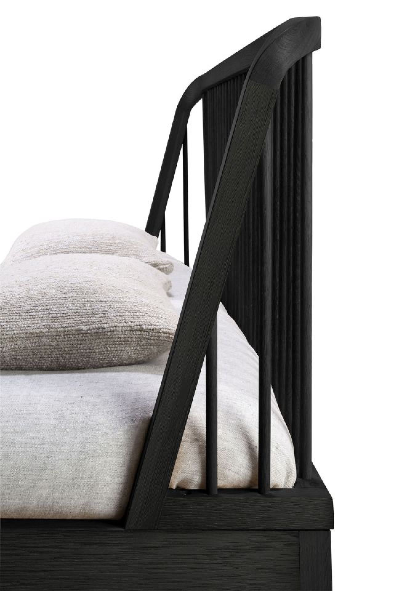 Das Spindle Bett ist aus schwarz gefärbtem Eichenholz gefertigt und sowohl für EU Queen Size (160 x 200 cm) und EU King Size (180 x 200 cm) Matratzen erhältlich.
