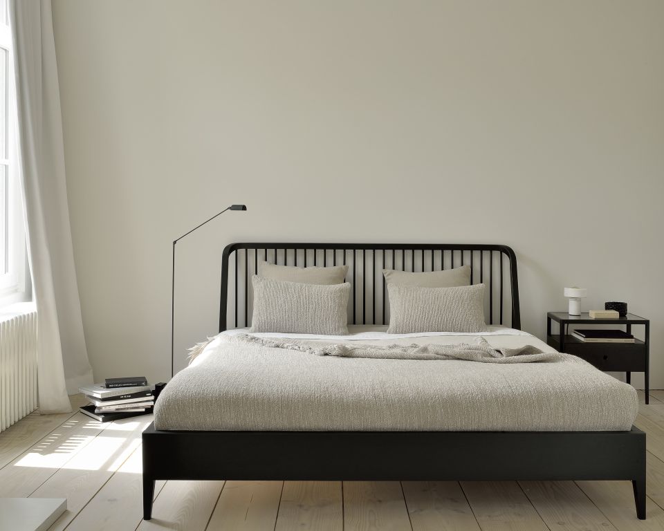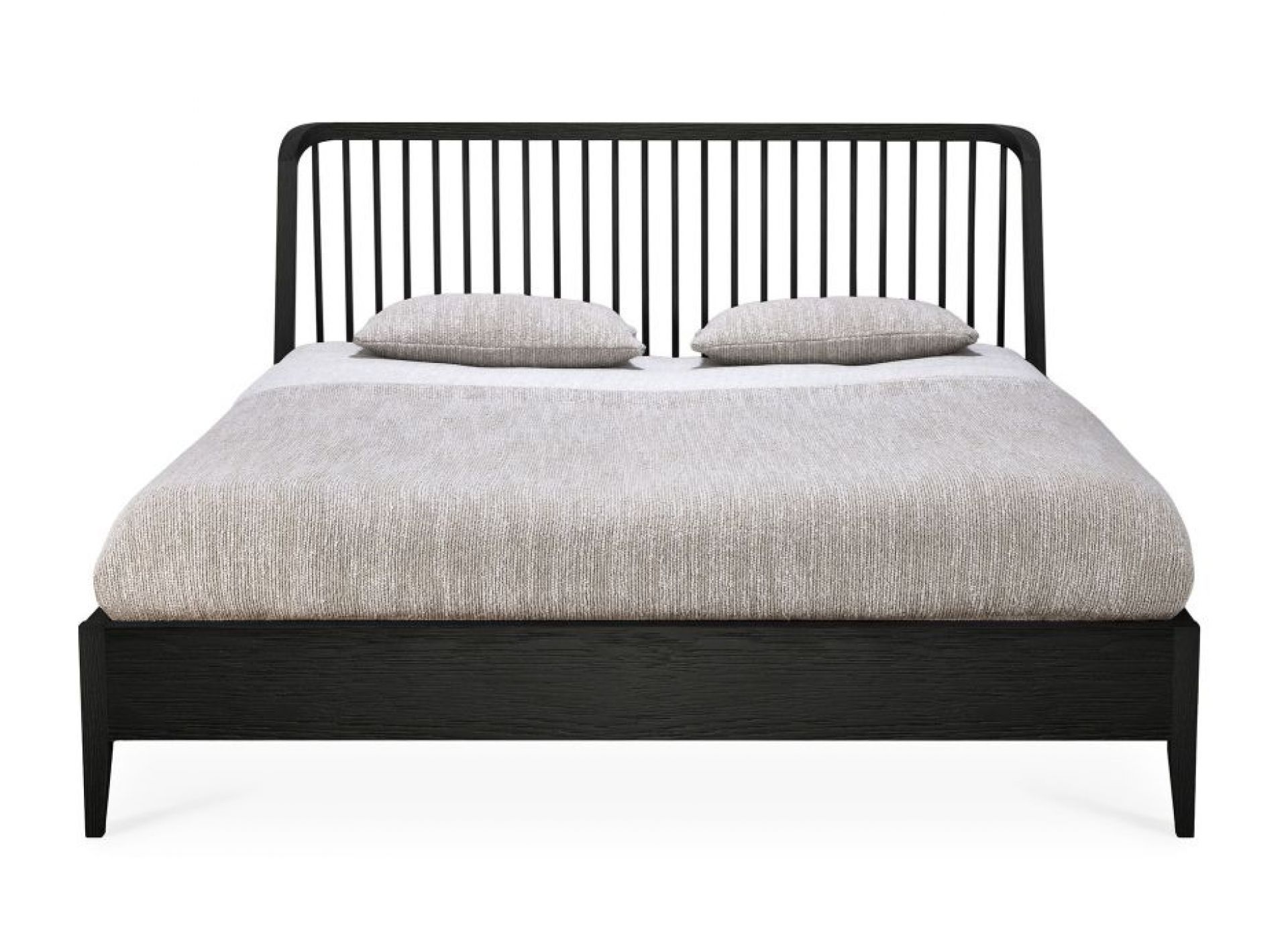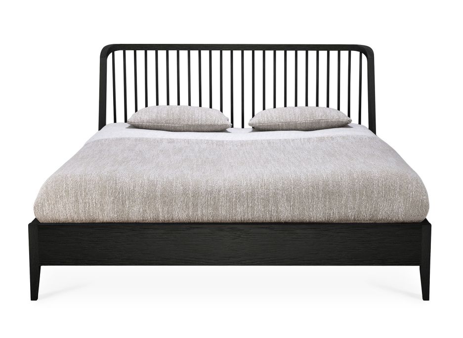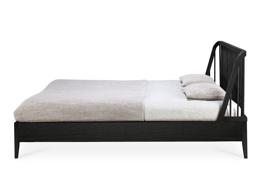 Das Spindle Bett ist aus schwarz gefärbtem Eichenholz gefertigt und sowohl für EU Queen Size (160 x 200 cm) und EU King Size (180 x 200 cm) Matratzen erhältlich.