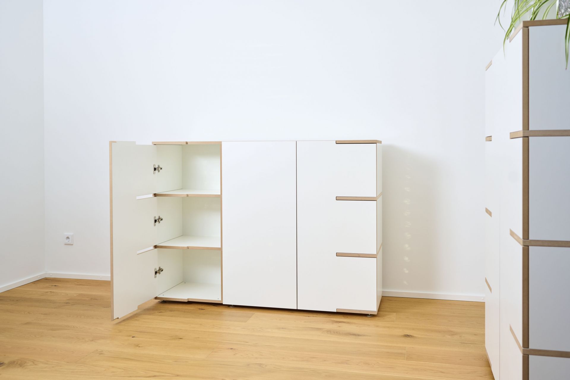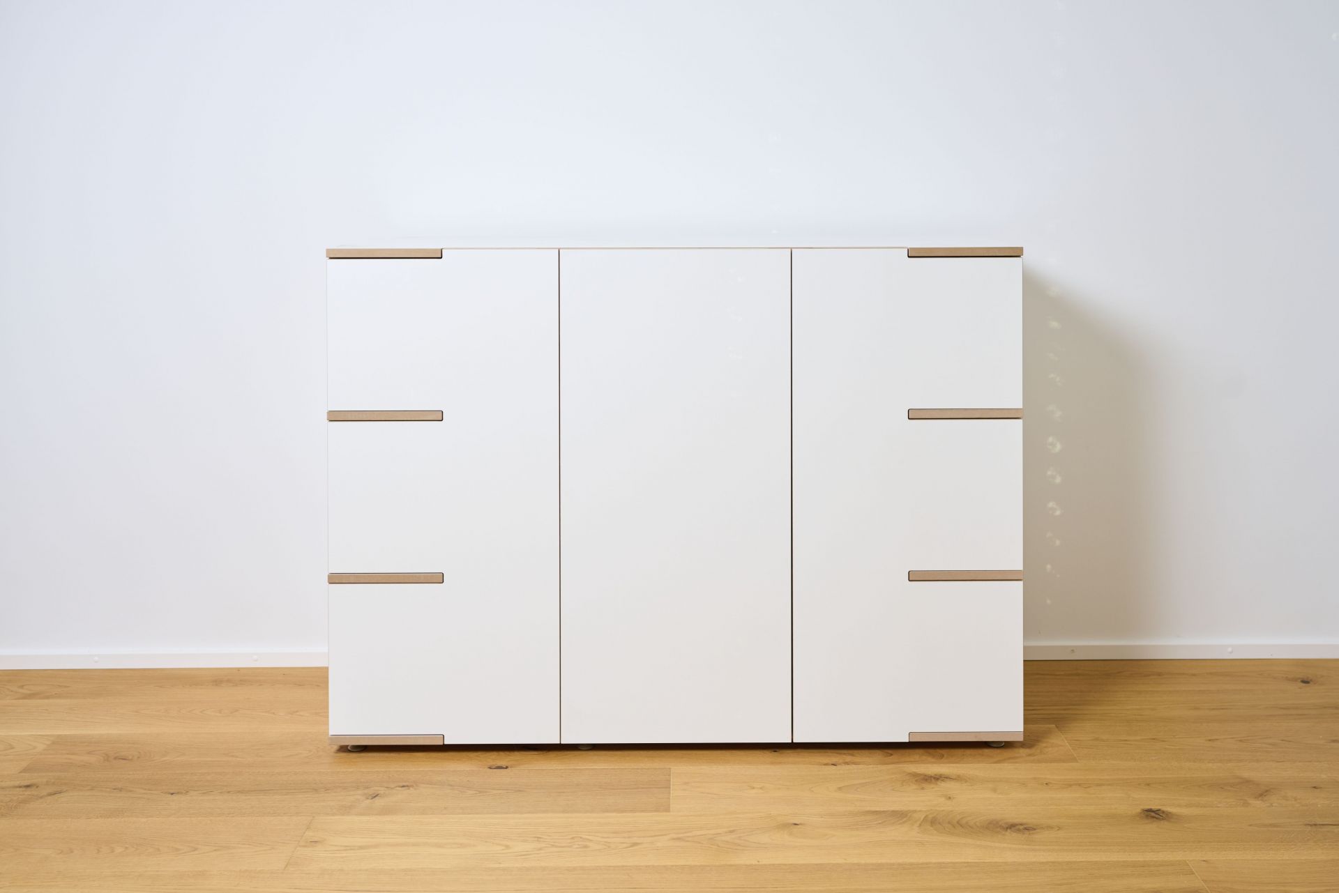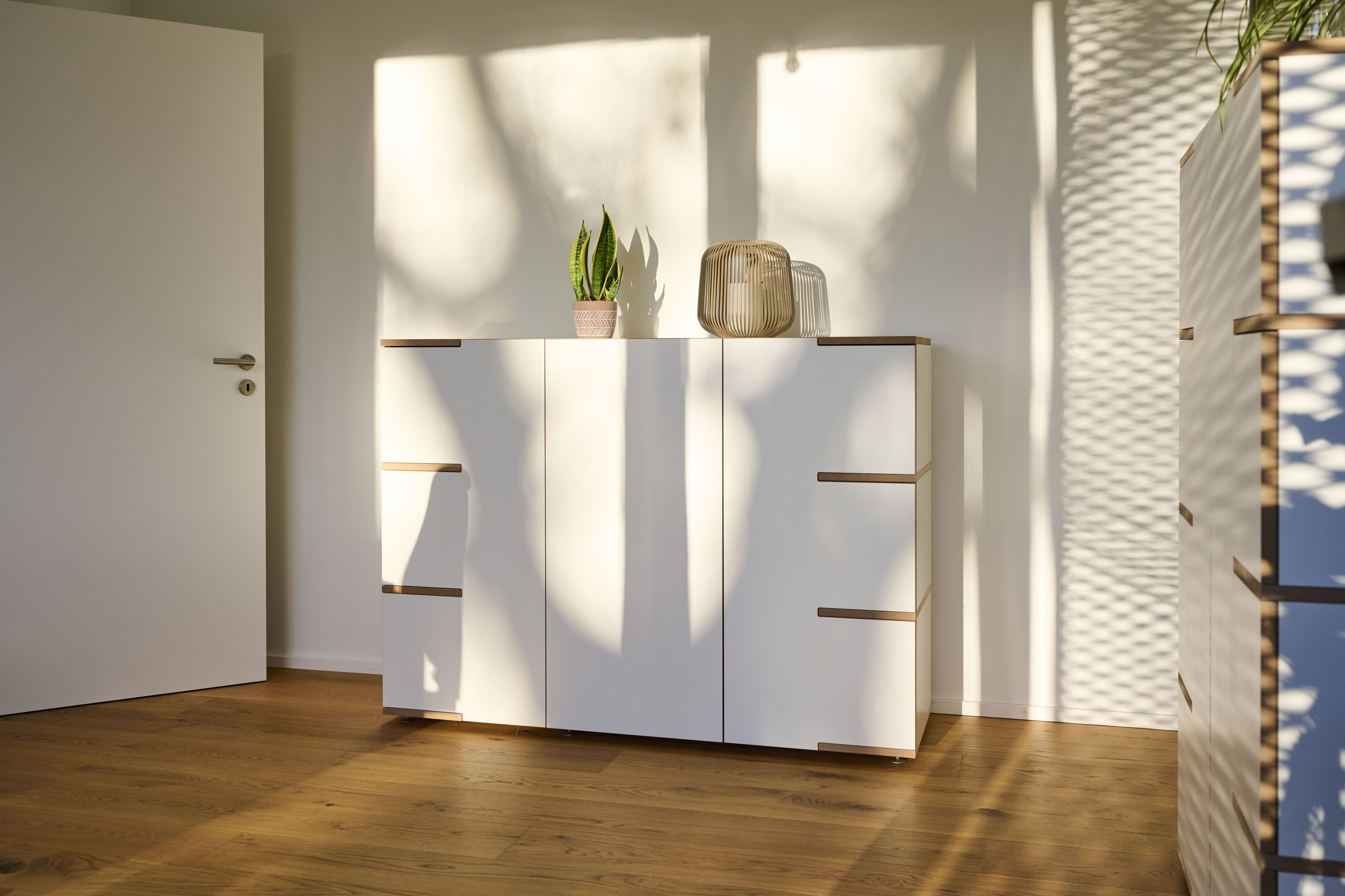Das Stau Sideboard von Tojo ist ein langjähriger Wegbegleiter, denn es findet mit jedem Umzug einen neuen Platz - egal ob Wohn-, Ess- oder Arbeitszimmer. Durch das schlichte Design und die vielseitigen Verwendungsmöglichkeiten kann es auch im Kinder- bzw. Jugendzimmer perfekt eingesetzt werden. Die Türen können mittels eingefräster Griffmulden an der oberen Seite geöffnet werden, was das minimalistische Design perfekt hervorhebt.