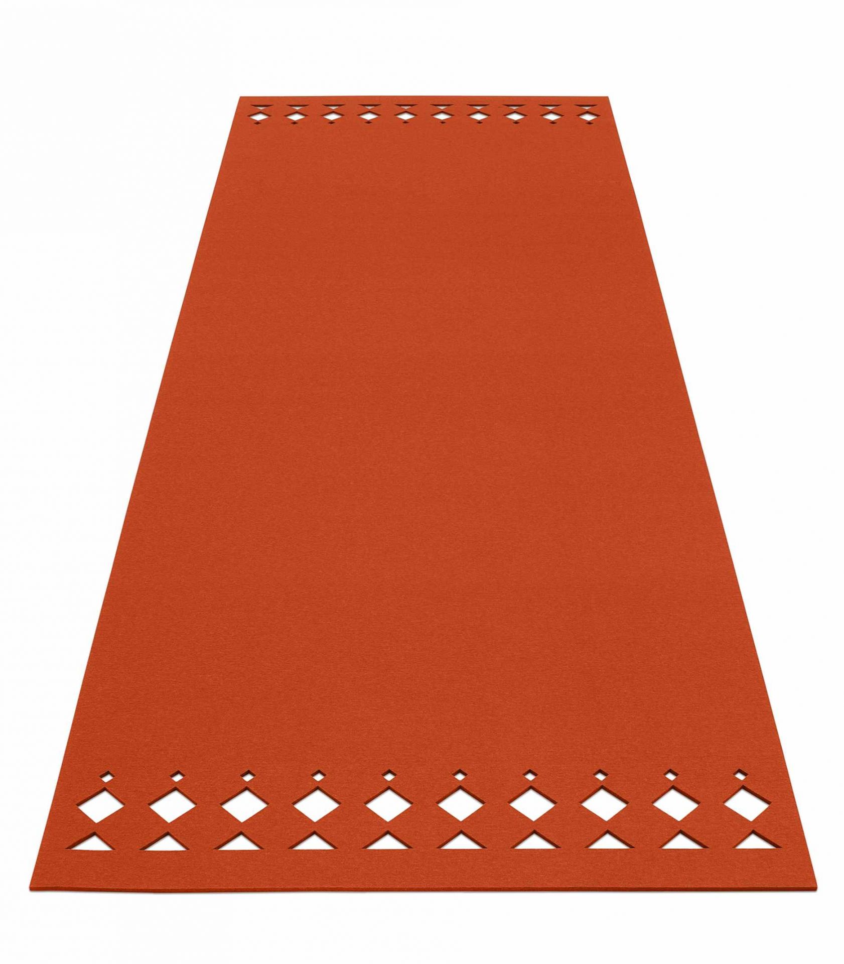Der Teppich wird mittels einer Flechttechnik von Hand gefertigt, so kommt das Naturmaterial Filz besonders gut zur Geltung.