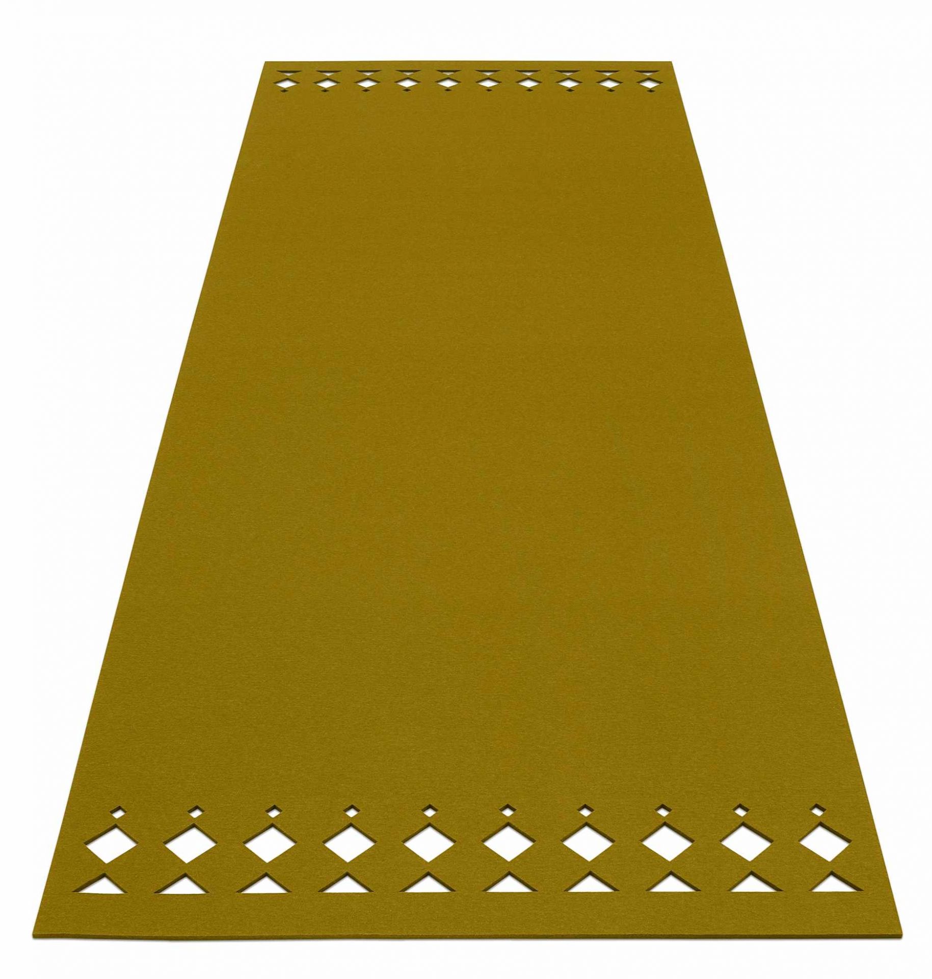 Der Teppich wird mittels einer Flechttechnik von Hand gefertigt, so kommt das Naturmaterial Filz besonders gut zur Geltung.