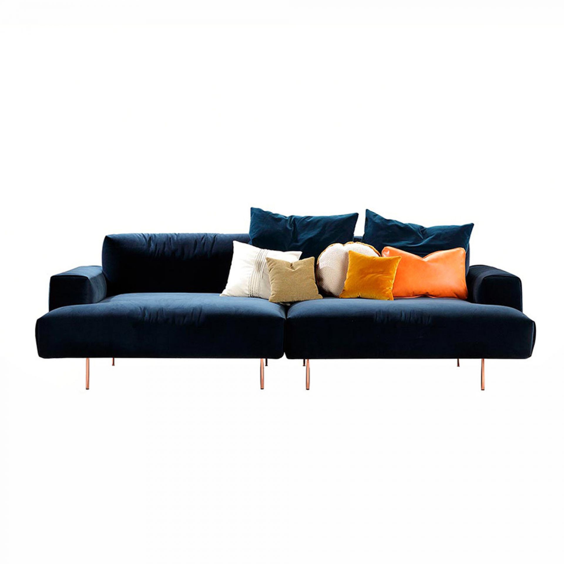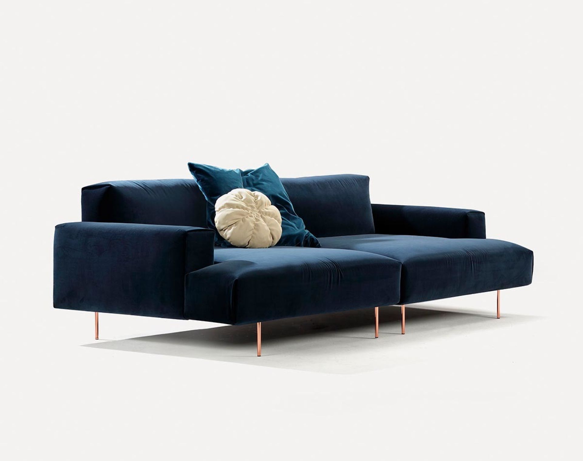Die schlanken Beine aus Metall stehen im deutlichen Kontrast zu der massiven, weichen Polsterung und sind zudem namensgebend für das Designsofa. Sie verleihen dem schlichten Sofa eine edle Note. Für die Polsterung wurde Faser- und Memoryschaum verwendet, der für ein extra komfortables Sitz- und Liegegefühl sorgt.