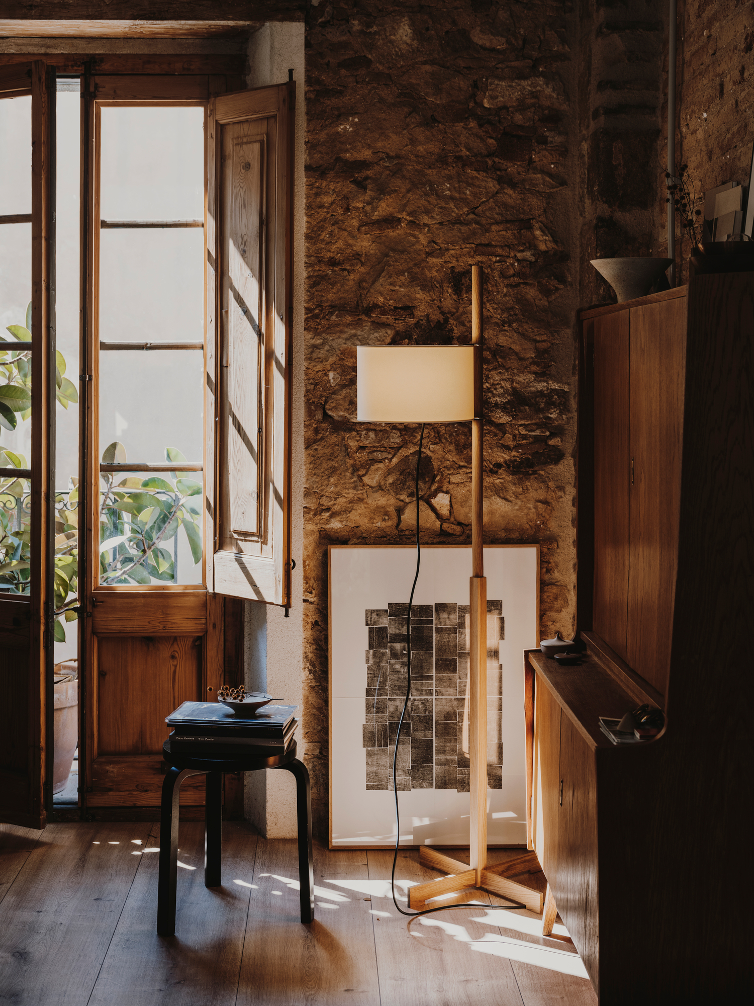 Mit ihrem Gestell aus Holz ist die TMM eine entspannte und besonders wohnliche Version der TM-Familie von Santa & Cole. Die kreuzförmige Basis trägt zusätzlich zu diesem Aspekt bei.