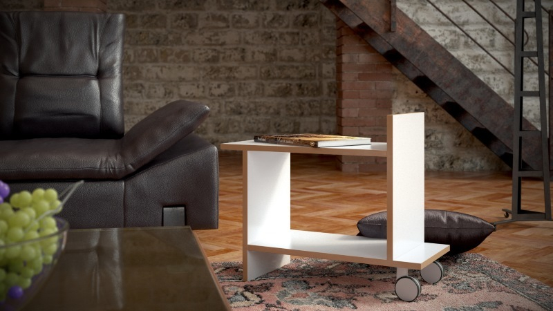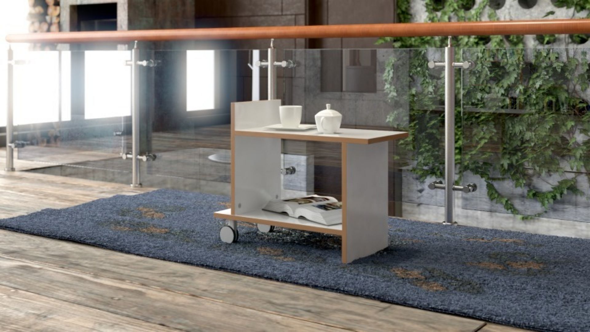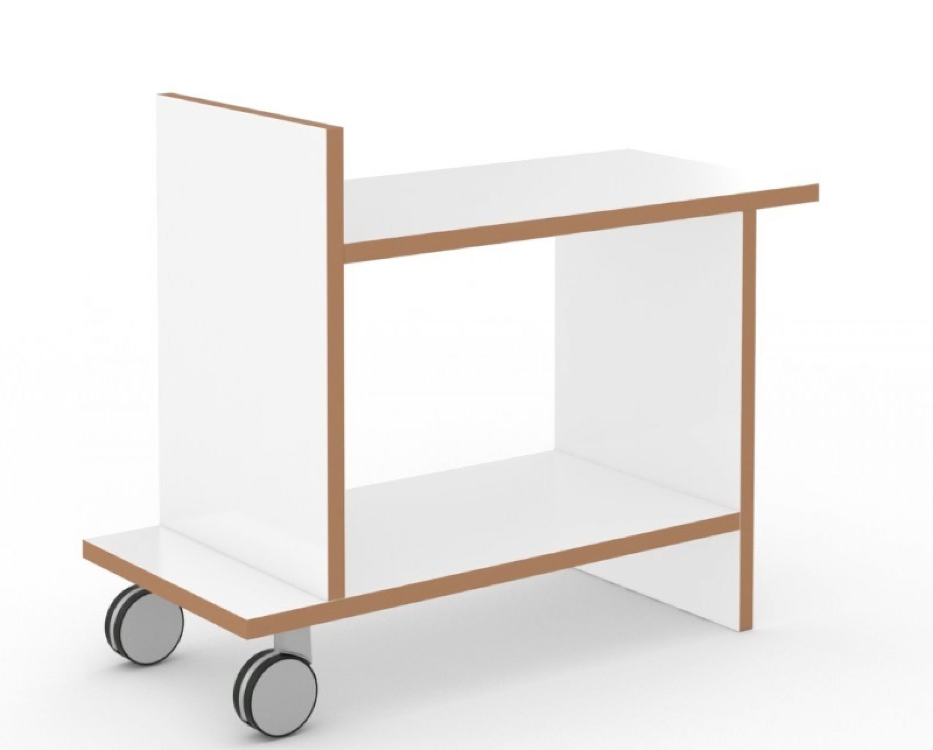 Tojo Freund Beistelltisch von Dirk Frömchen ist ein fahrbarer Tisch.