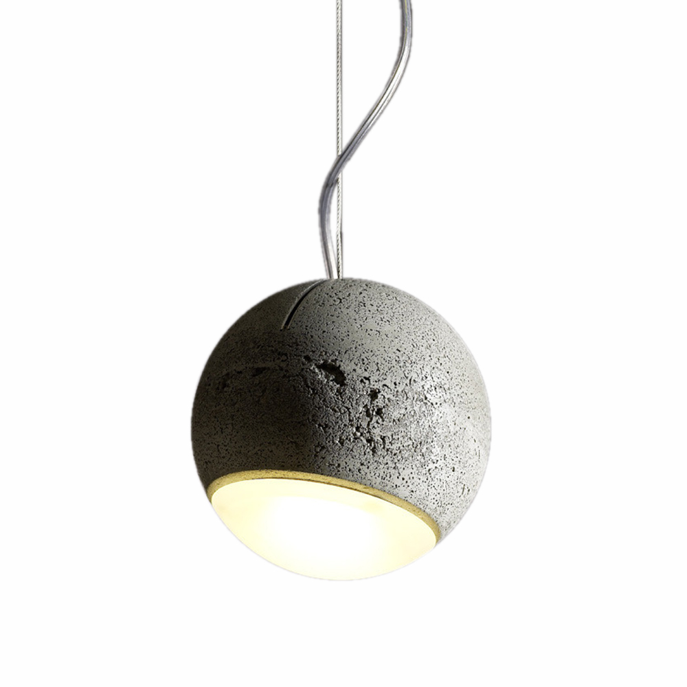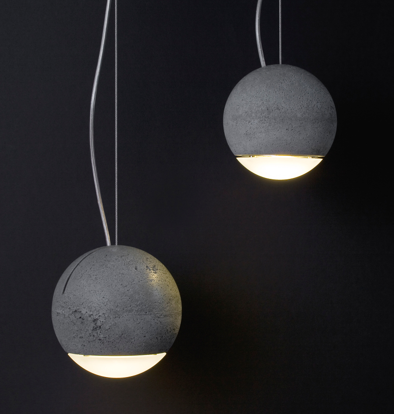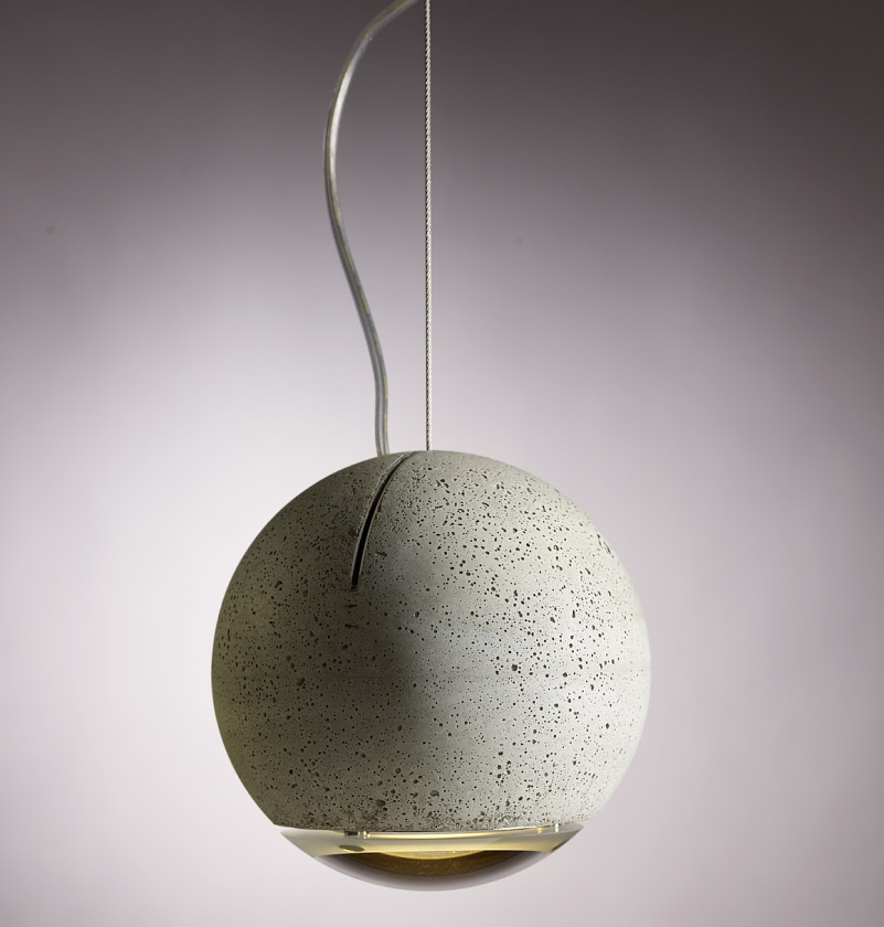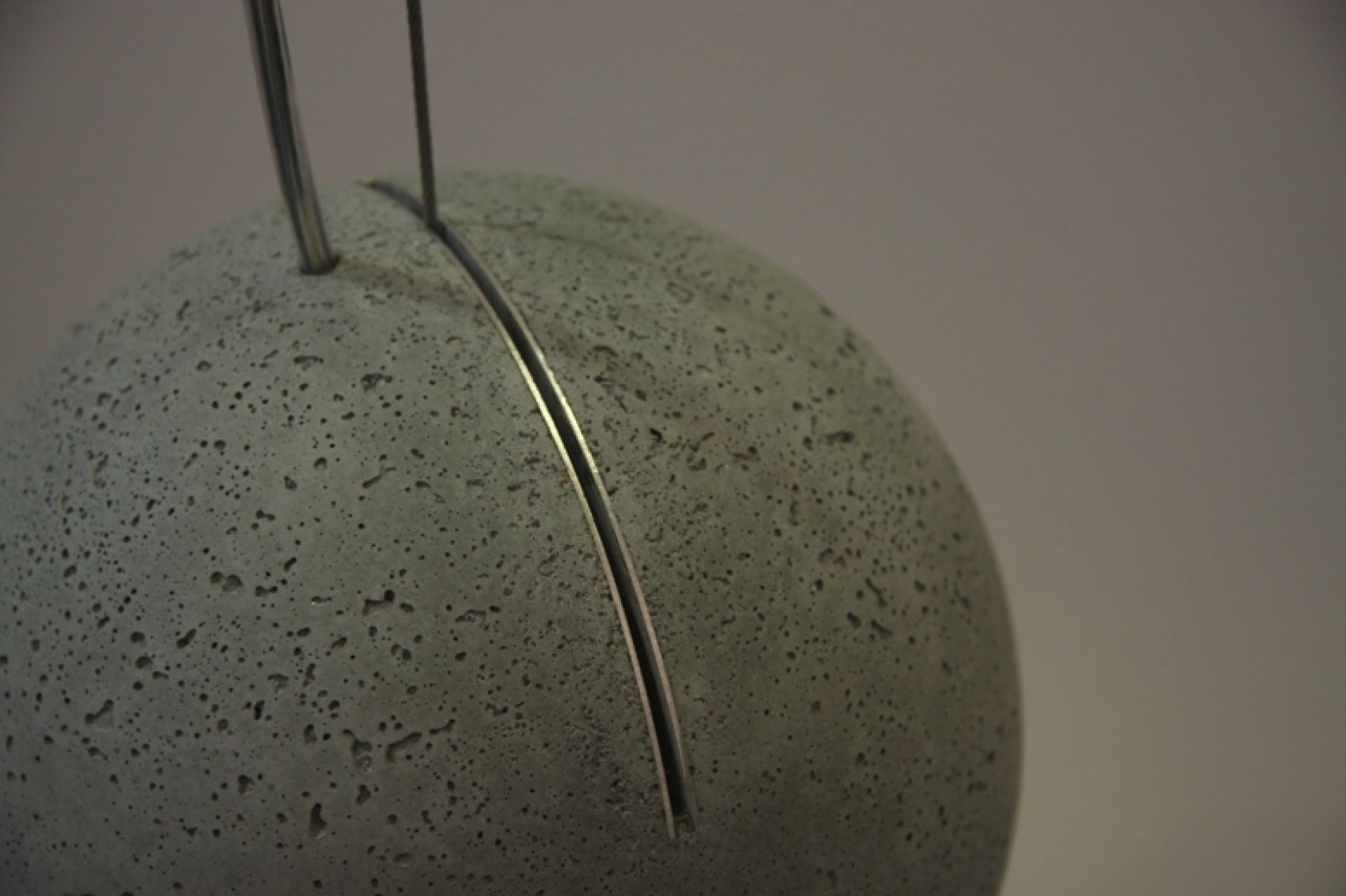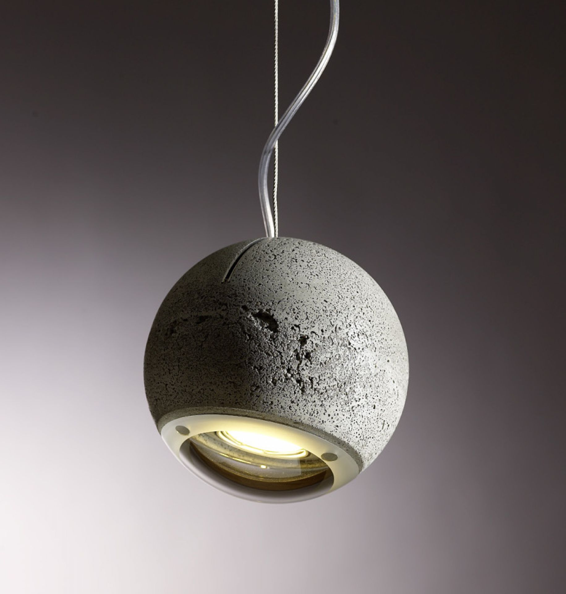 An einem dünnen Drahtseil hängt eine Betonkugel, deren Unterseite durch eine hochwertige Glaslinse ( matt oder klar ) mit gleicher Krümmung ersetzt ist - das ist die Trabant Pendelleuchte von Tecnolumen. Die besondere Designleuchte wirkt wie ein Flugkörper aus dem Weltall, der Planeten umkreist - daher auch der Name. Eine schmale Spur im Beton erlaubt ein Kippen und Drehen der Leuchte, was bei Trabant 2 nicht möglich ist.