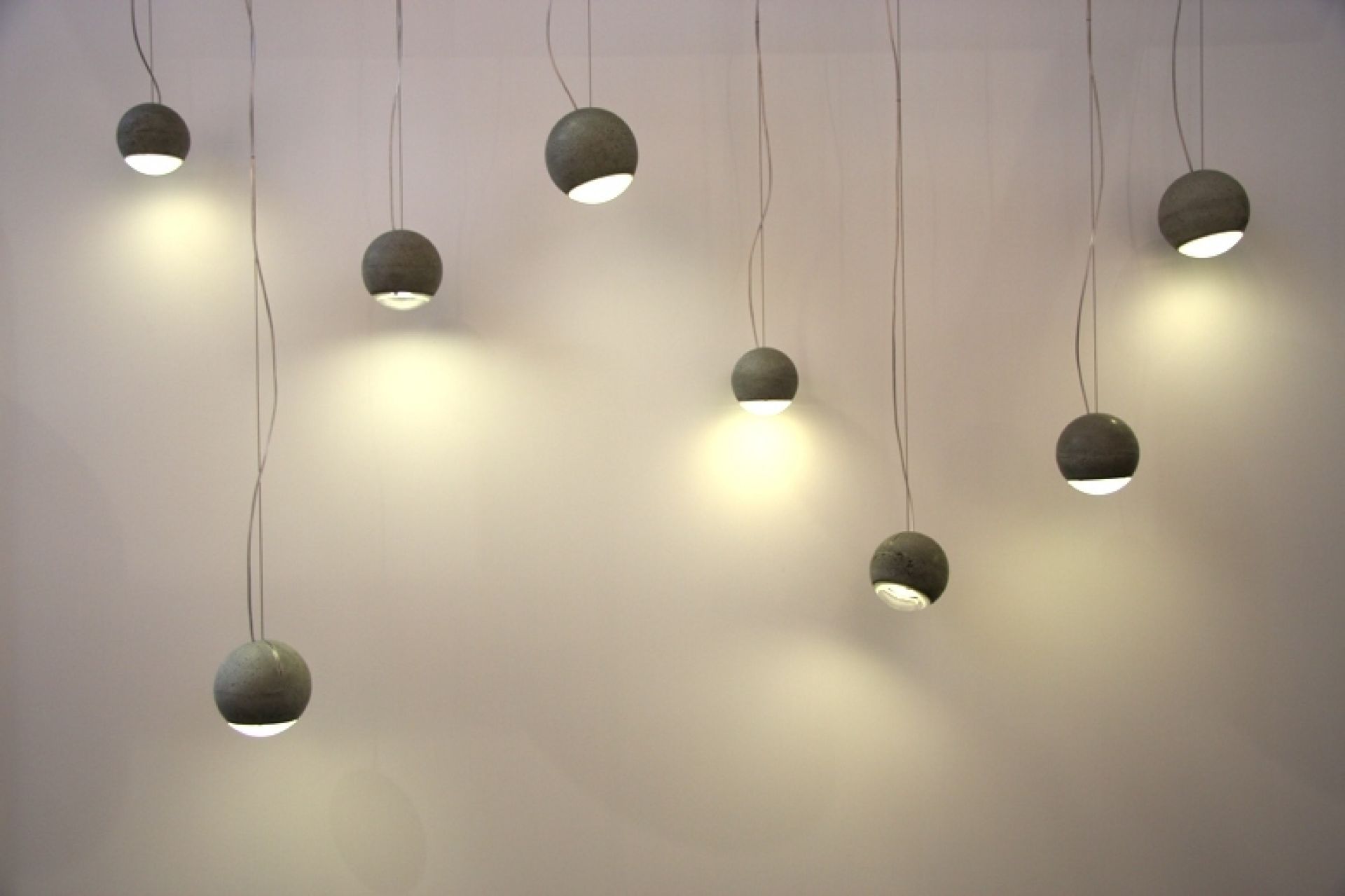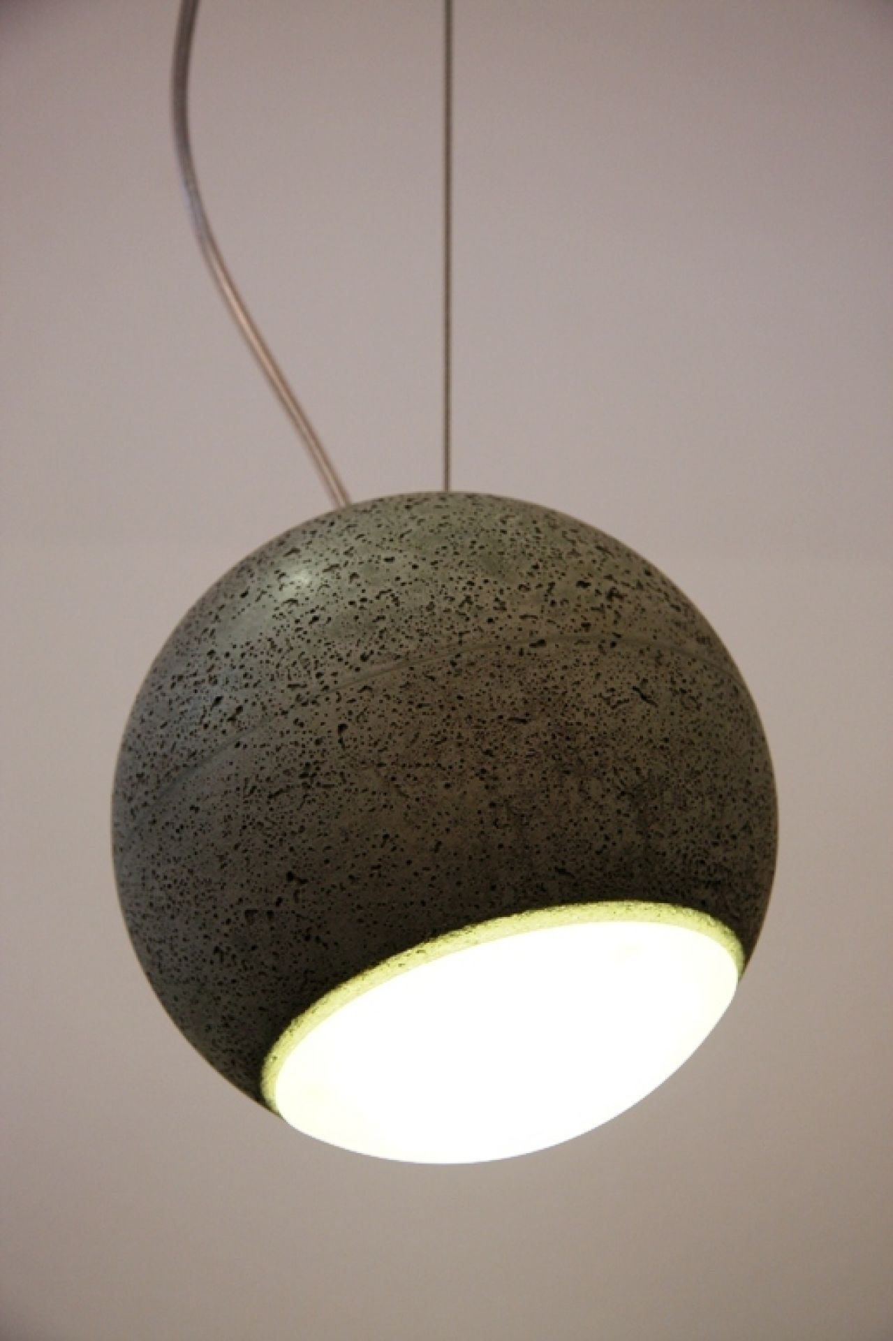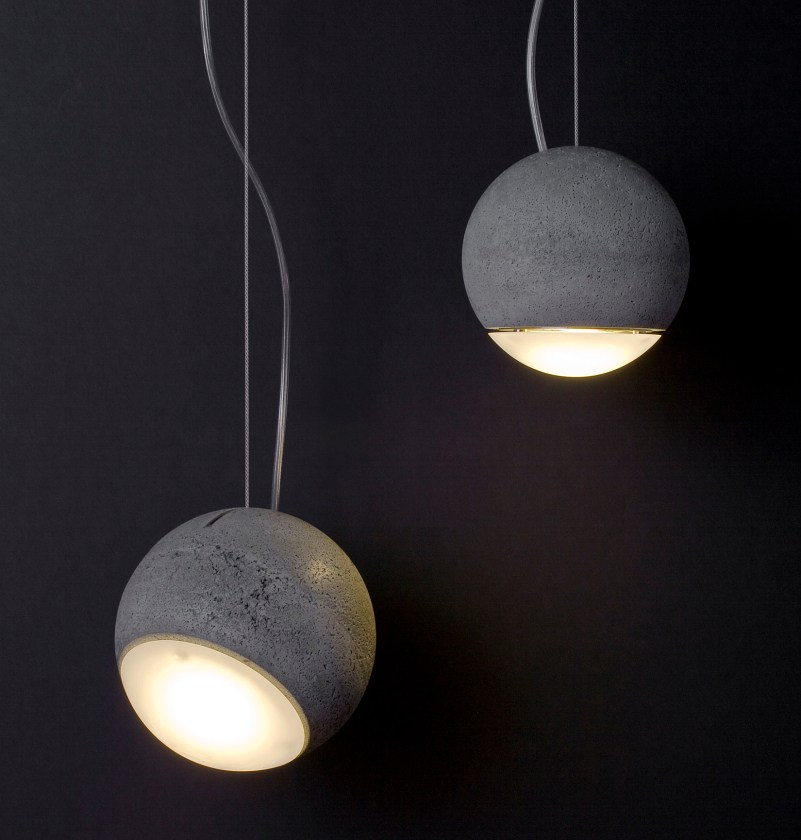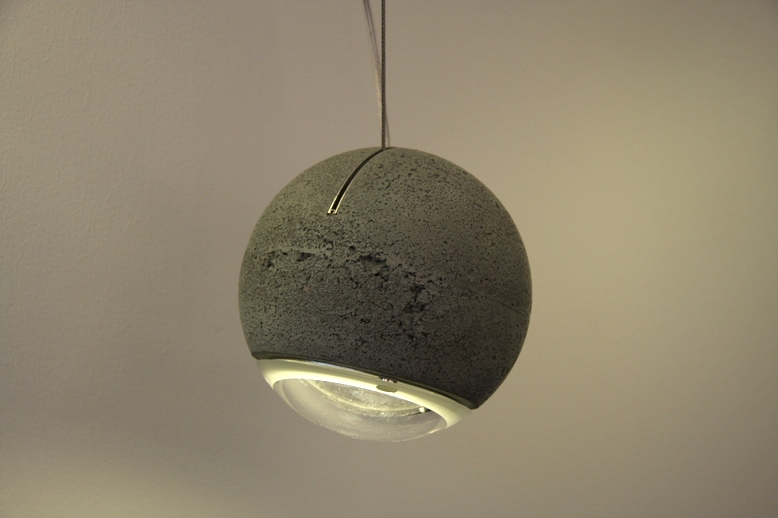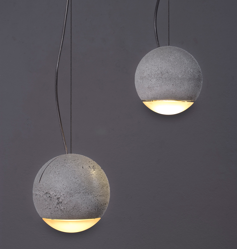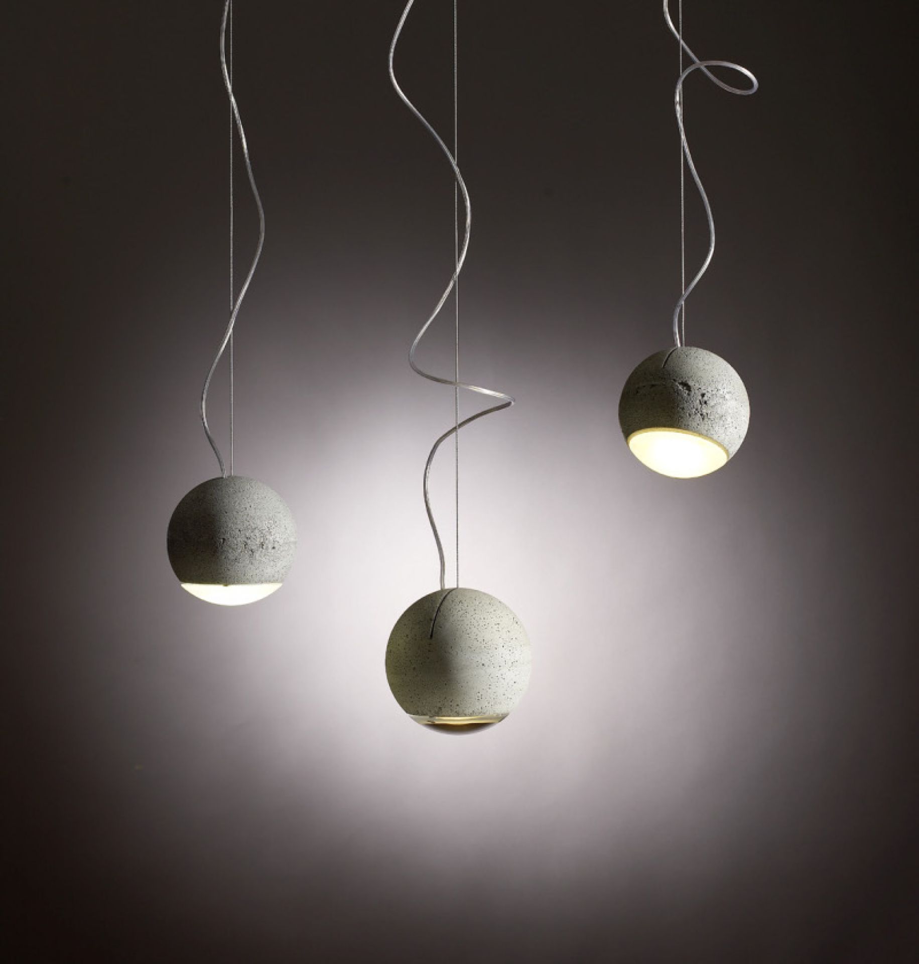 An einem dünnen Drahtseil hängt eine Betonkugel, deren Unterseite durch eine hochwertige Glaslinse ( matt oder klar ) mit gleicher Krümmung ersetzt ist - das ist die Trabant Pendelleuchte von Tecnolumen. Die besondere Designleuchte wirkt wie ein Flugkörper aus dem Weltall, der Planeten umkreist - daher auch der Name. Eine schmale Spur im Beton erlaubt ein Kippen und Drehen der Leuchte, was bei Trabant 2 nicht möglich ist.