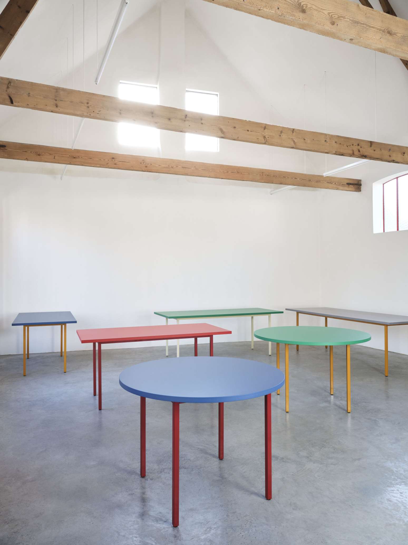 Farbenfroh par excellence – das ist die Two-Colour Tisch-Serie des belgischen Designerpaares Muller Van Severen. Inspiriert wurden die beiden von den Unterschieden und Gemeinsamkeiten der verwendeten Materialien und den diversen Möglichkeiten, diese zu präsentieren.