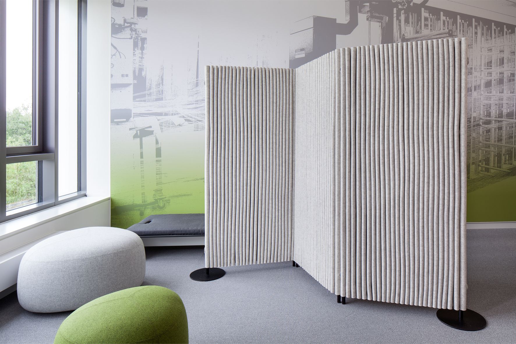 Eine gute Schall-Absorption in Büro- oder Gemeinschaftsräumen ist unerlässlich. Mit Akustikelementen lässt sich die Raumakustik einfach verbessern. Im Fall der Welle Elemente von HEY - SIGN by BWF Group auch noch in einer ansprechenden und formschönen Optik.
