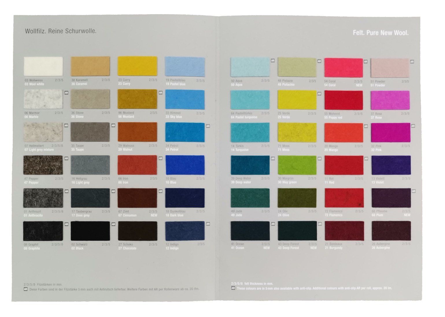 Das Modul besteht aus 3mm starkem Filz, der in Wellen gelegt ist. Es ist in verschiedenen Abmessungen und Farben erhältlich.