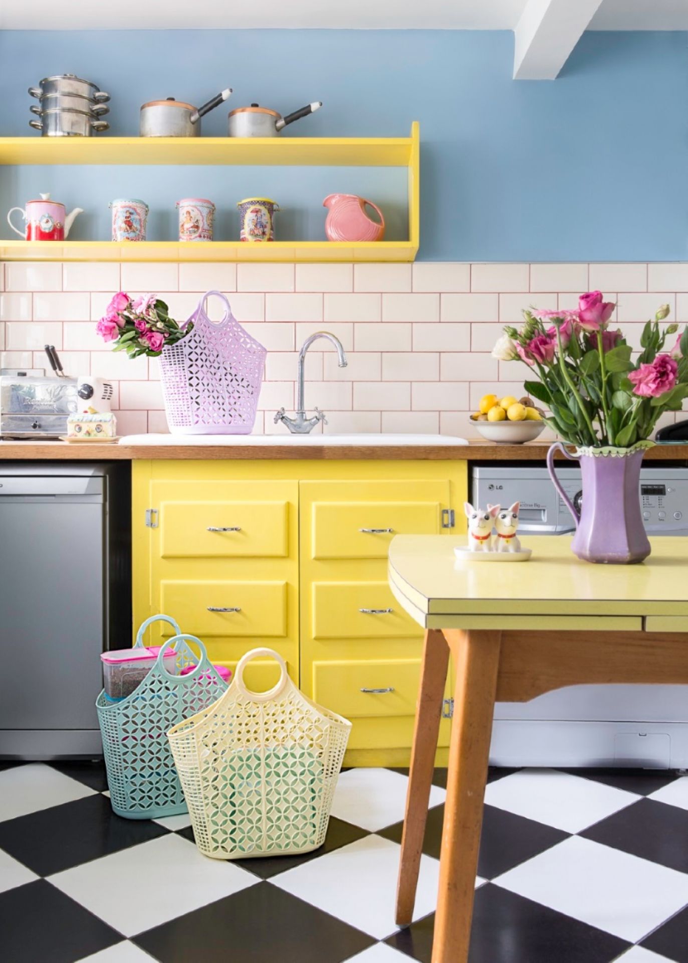 Dichas Korb mit gelbem Gestell: Geflochtener Aufbewahrungskorb mit Metallrahmen für Wohnzimmer und Ordnung.