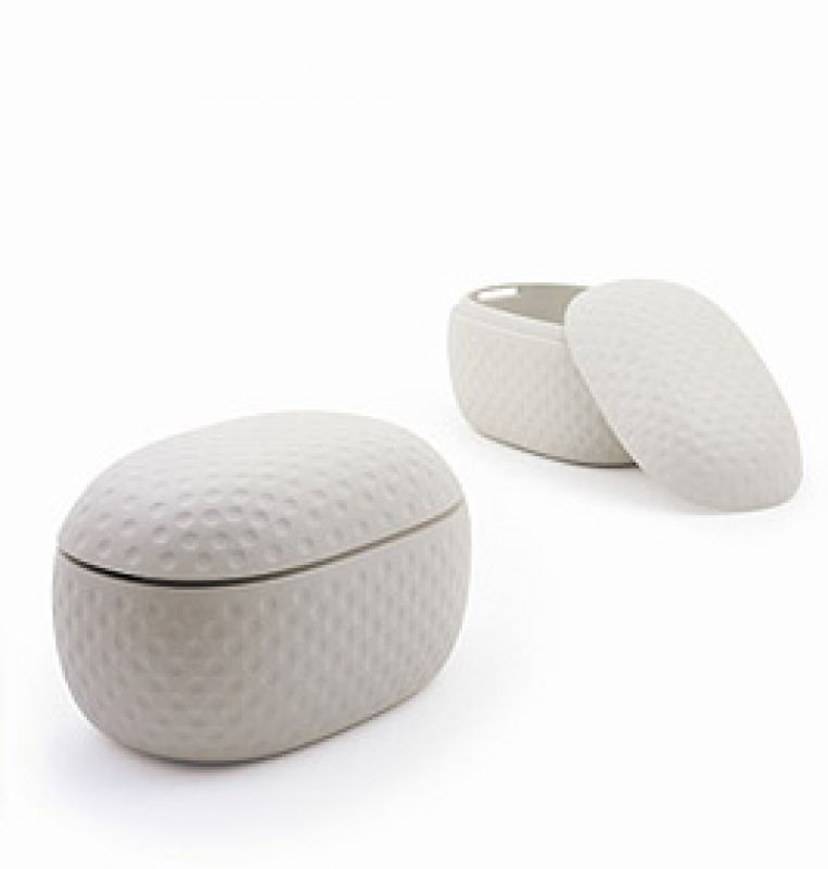 Weiße Magis Aufbewahrungsbox "El Baúl" mit Deckel, geriffelte Oberfläche, moderne Aufbewahrung für Wohnraum und Büro.