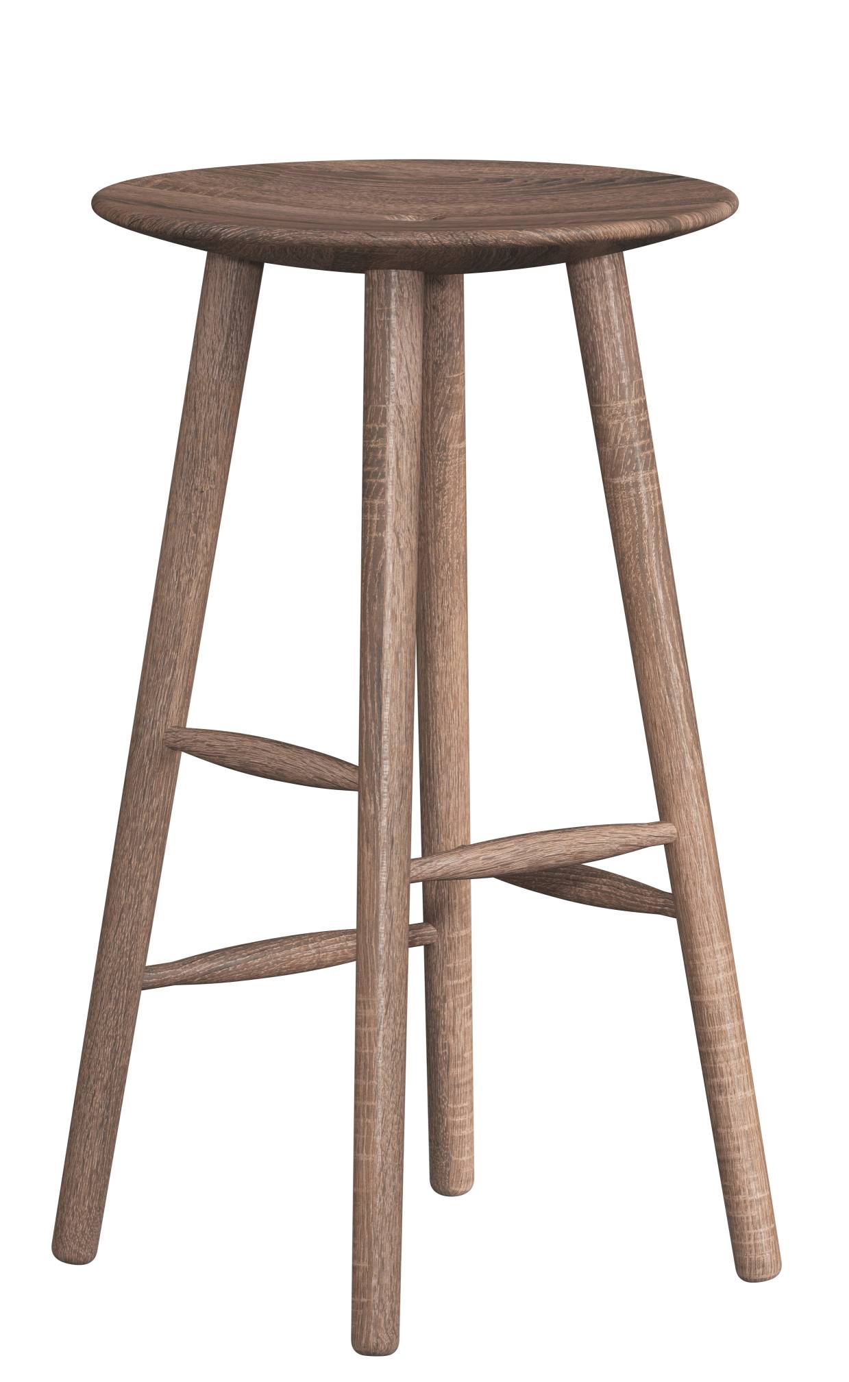 Der Barhocker ist aus massivem Eichenholz gefertigt und ist in den Ausführungen Eiche schwarz gebeizt, Eiche natur und Eiche dunkel gebeizt erhältlich. Der Stuhl hat die Maße H 65 cm x ø39 cm.