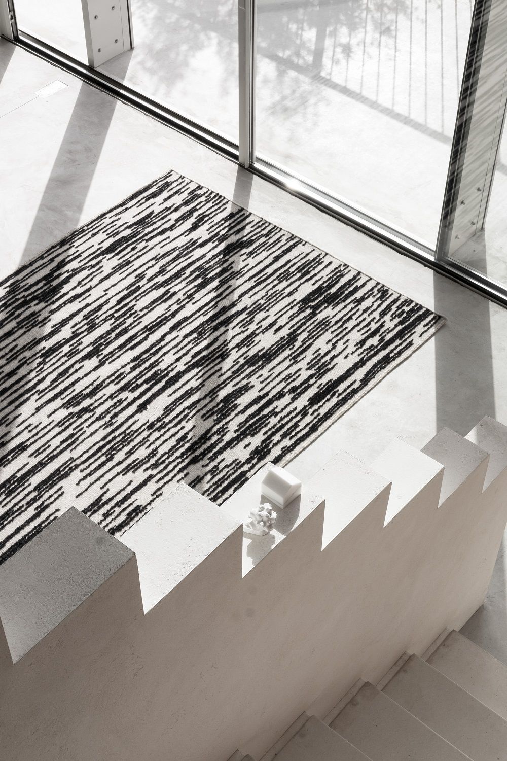 Konzipiert als Wendeteppich, können Sie Doblecara nach Belieben von beiden Seiten genießen. Je nach gewählter Farbvariante eröffnet sich so ein besonderes Spiel aus Farben, Linien und Kontrasten.