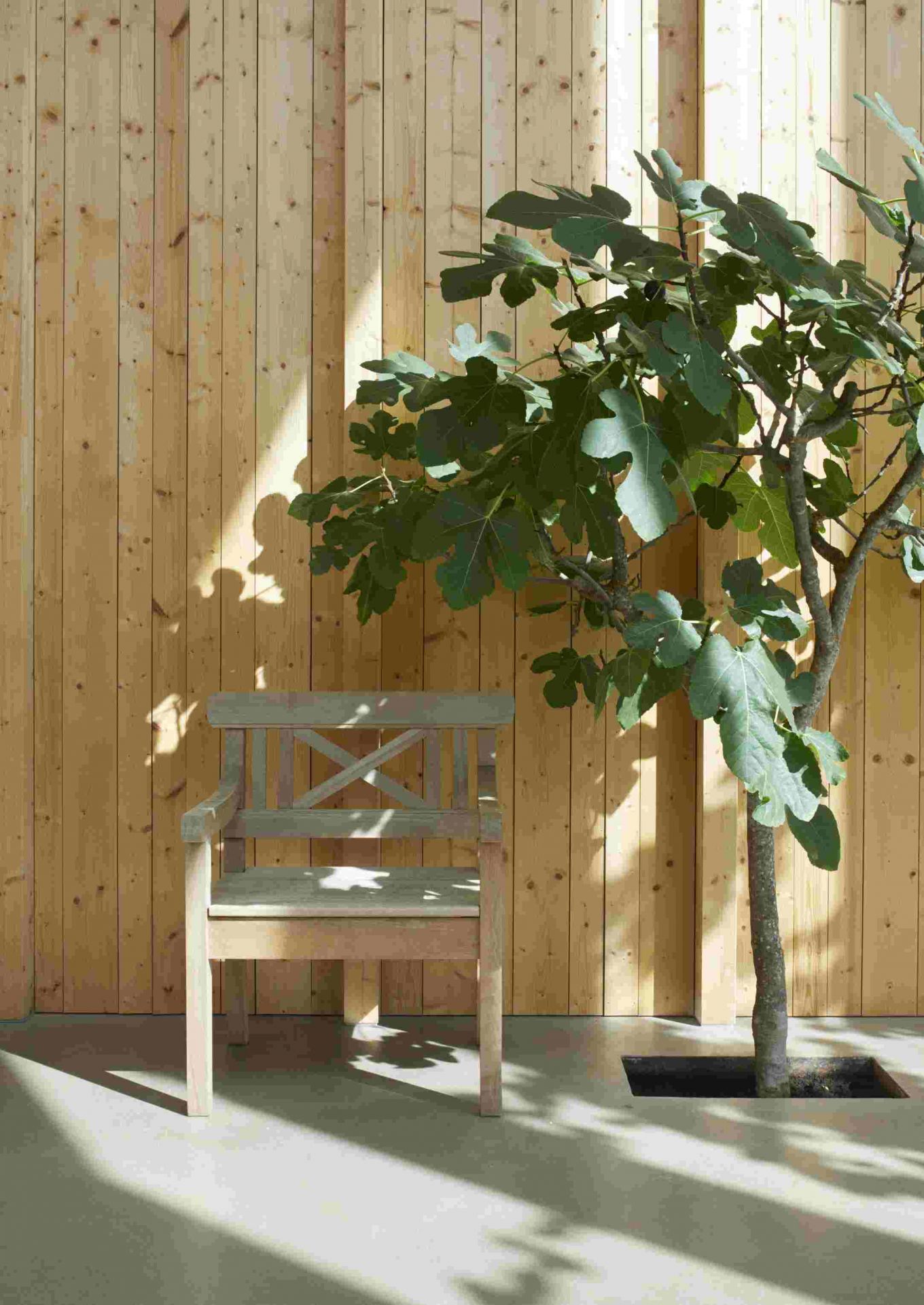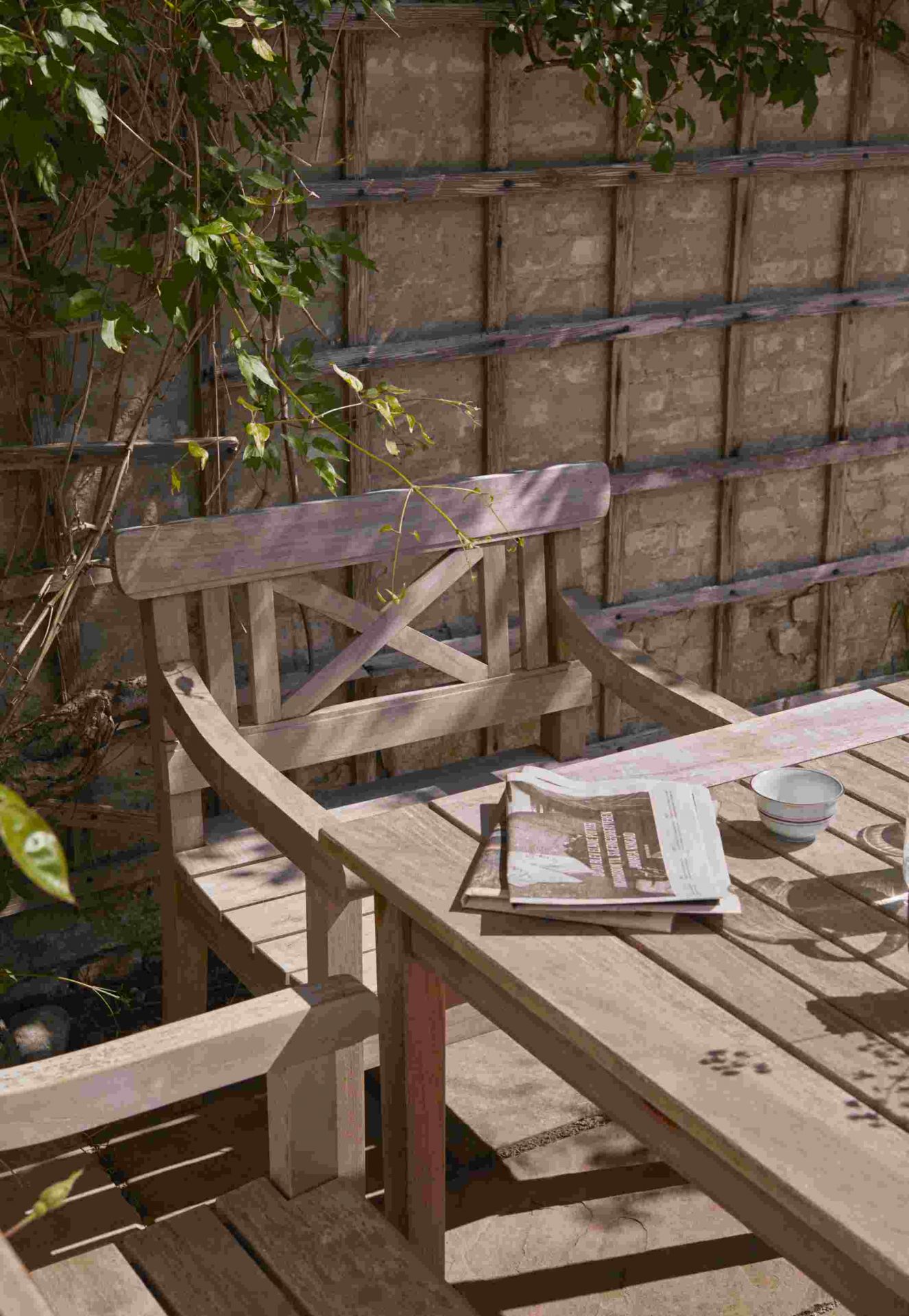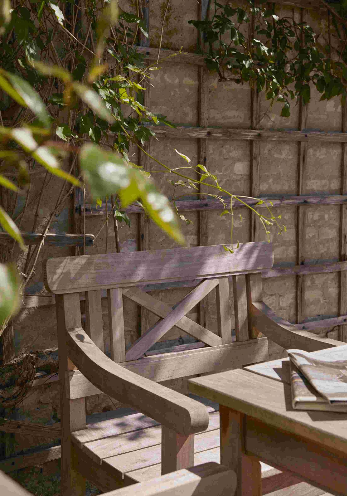 Ein besonderes Designhighlight ist natürlich die Rückenlehne, die dank gerader und kreuzförmiger Holzstreben ein interessantes Muster aufweist.