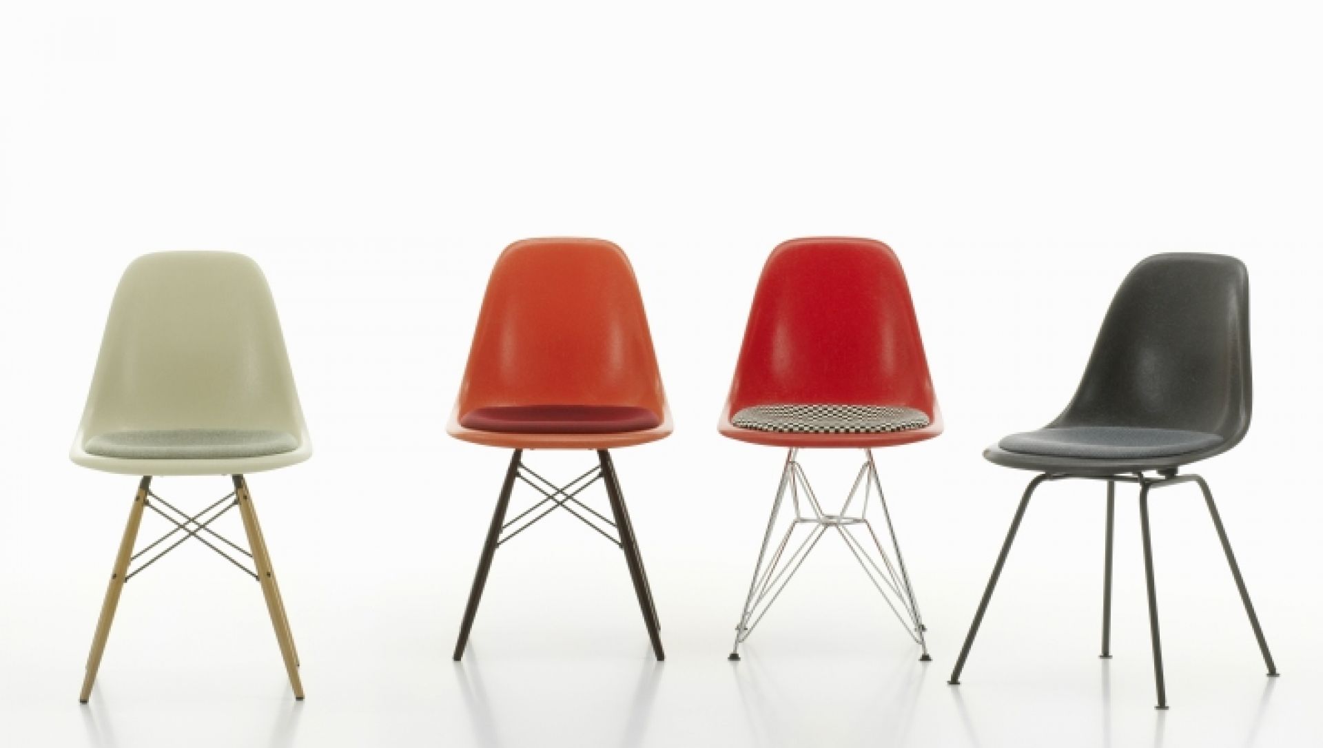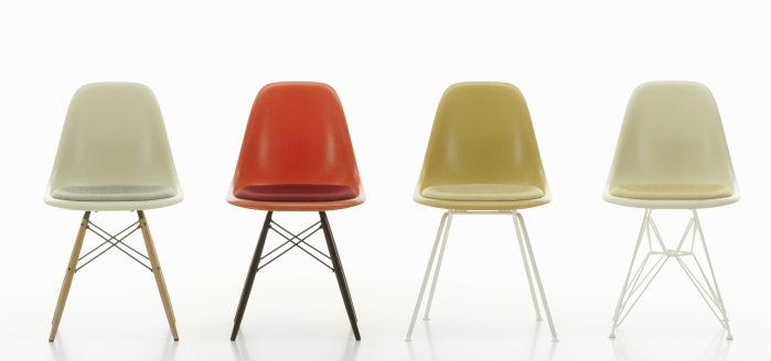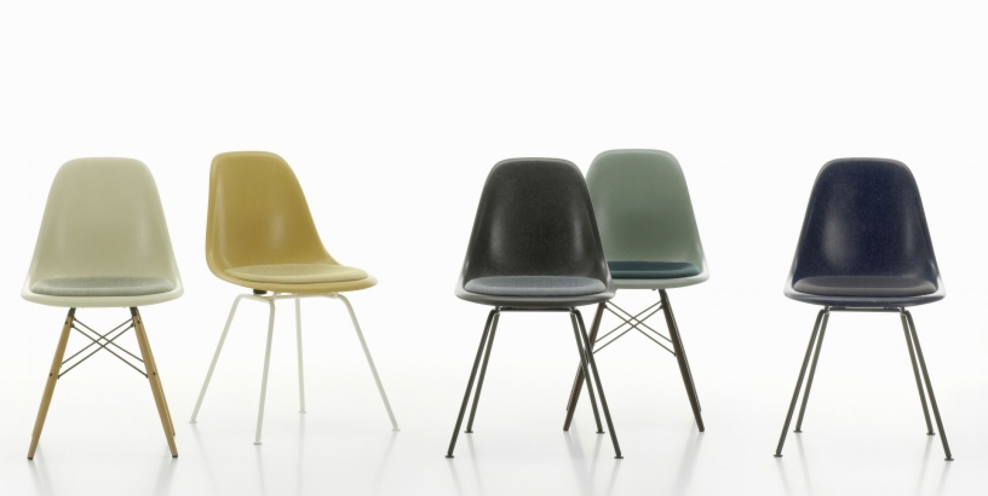 Legende: Eames Fiberglass Chair DSX Stuhl mit Sitzpolster Vitra