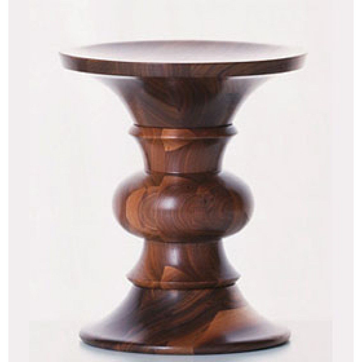 Der Designhocker ist wahlweise aus massivem Nussbaumholz oder massivem Kastanienholz erhältlich. Er wird mehrlagig verleimt, gedrechselt und klar lackiert. Das verwendete Holz stammt aus Westeuropa. Der Eames Stools B Hocker ist 38 cm hoch und hat einen Durchmesser von 33 cm.