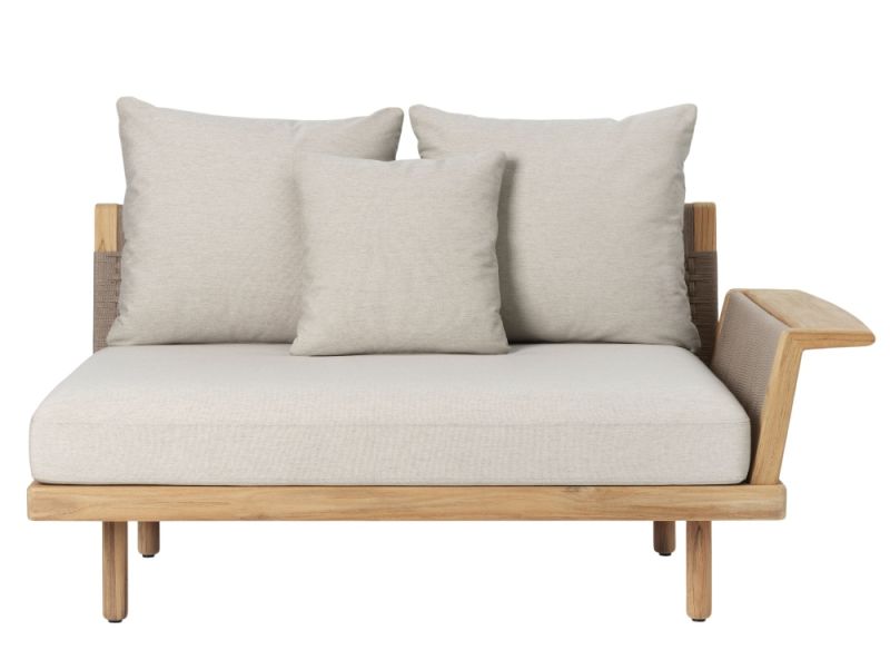 Beiges Anagram Chaise Longue Sofa von Vitra mit Holzablagen, modernes Ecksofa für Wohnzimmer.