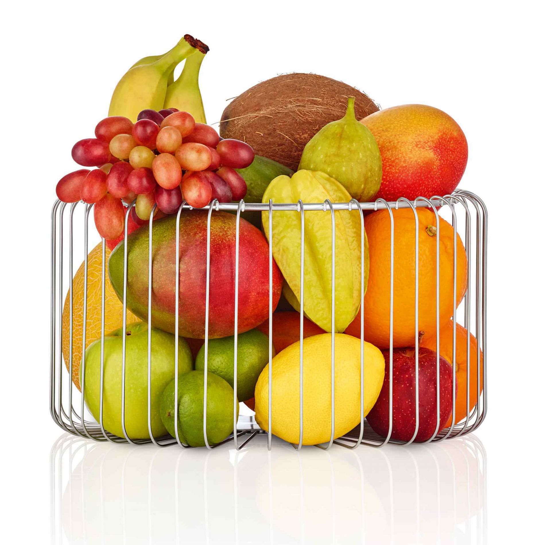 Auf Draht: der Estra Edelstahlkorb mit einem Durchmesser von 30 cm von Blomus. Nichts wirkt einladender als ein prall gefüllter Obstkorb. Da greift man gerne hinein und tut seiner Gesundheit gleich etwas Gutes.