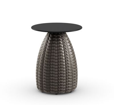Dedon Porcini Beistelltisch Ø41cm: Geflochtener Outdoor-Tisch mit runder, schwarzer Tischplatte für Garten und Terrasse.