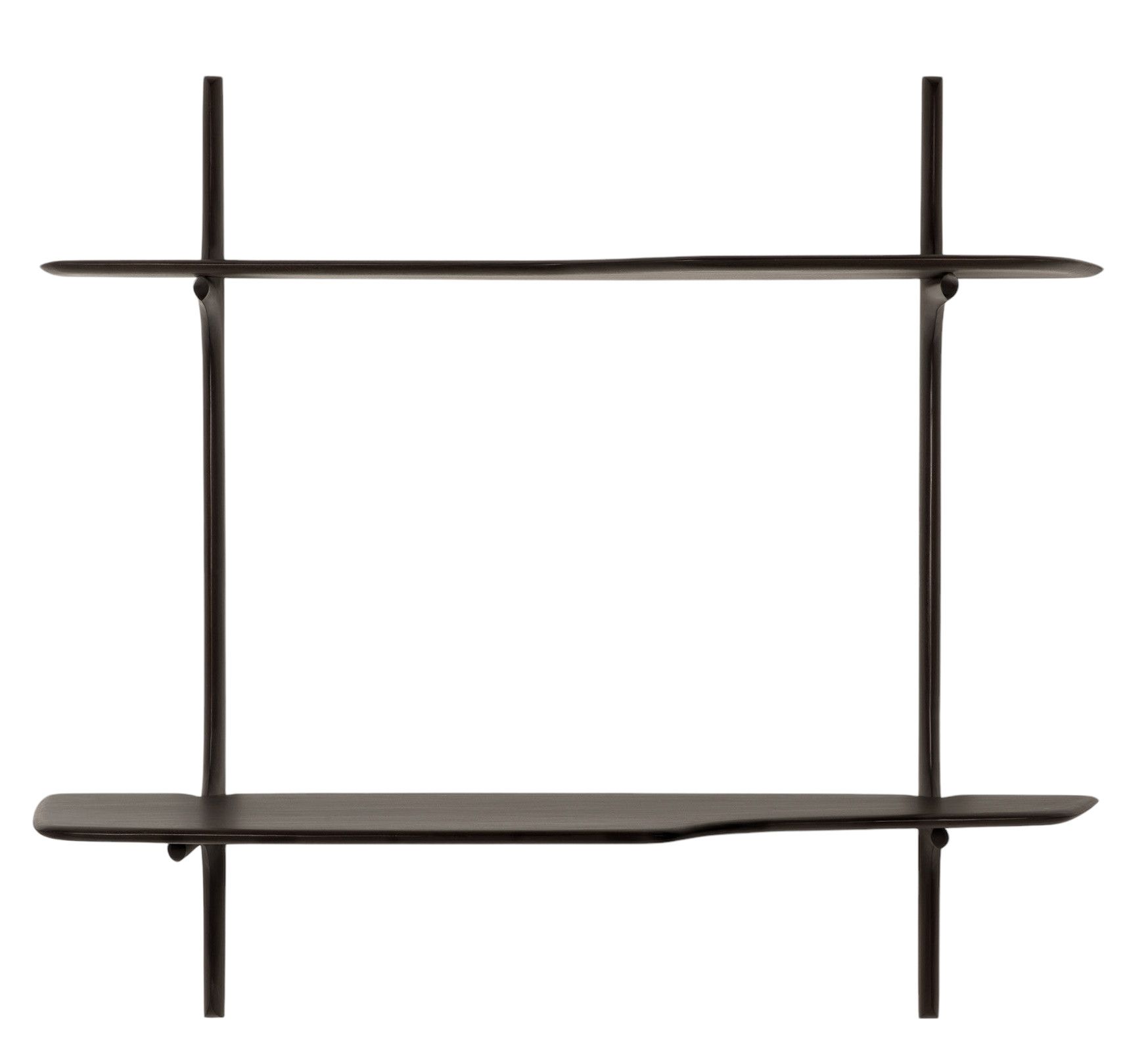 Ethnicraft PI Wandregal Schreibtisch aus dunklem Holz, minimalistisches Design für Büro und Arbeitszimmer.