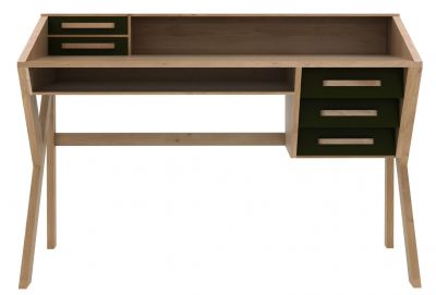Origami Schreibtisch aus Eiche von Ethnicraft mit grünen Schubladen und minimalistischem Design.