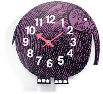 Elihu Elefant Wanduhr von Vitra Zoo Timers, lila Elefantenuhr für Kinderzimmer.
