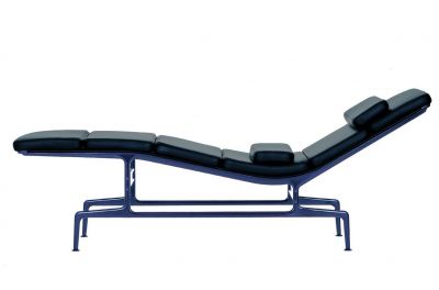 Vitra Soft Pad Chaise ES 106 Liege mit schwarzem Lederbezug und blauem Gestell.