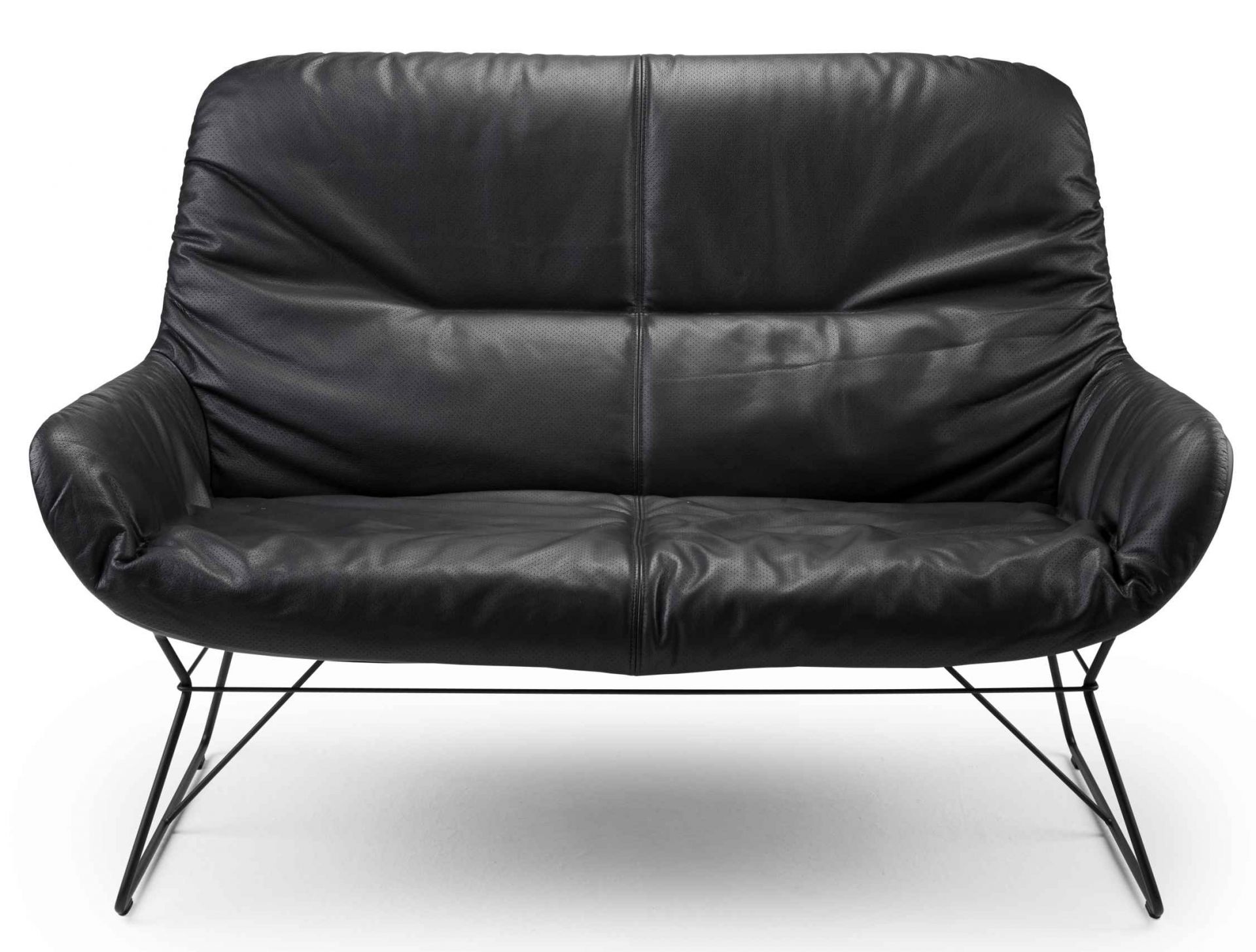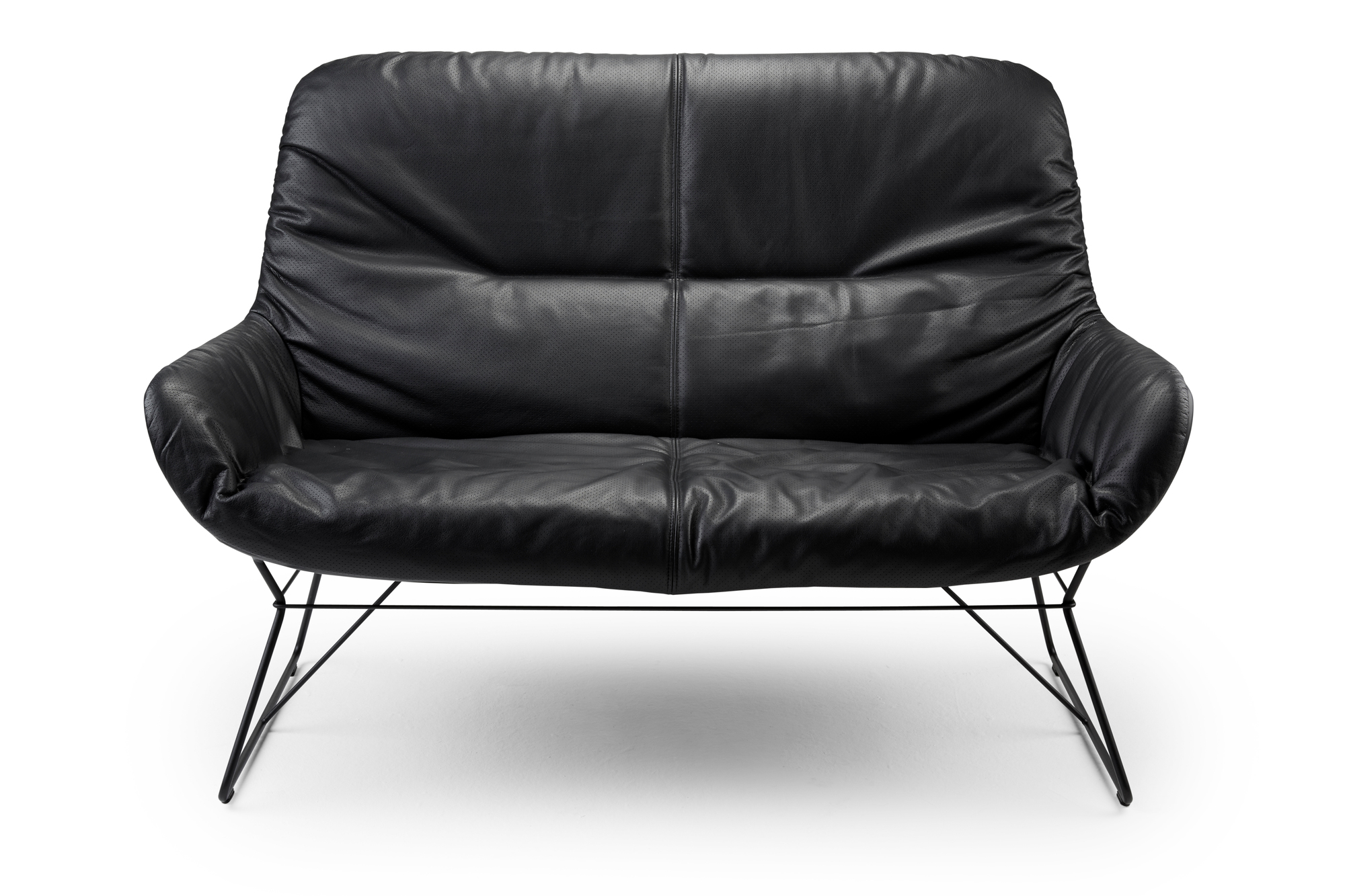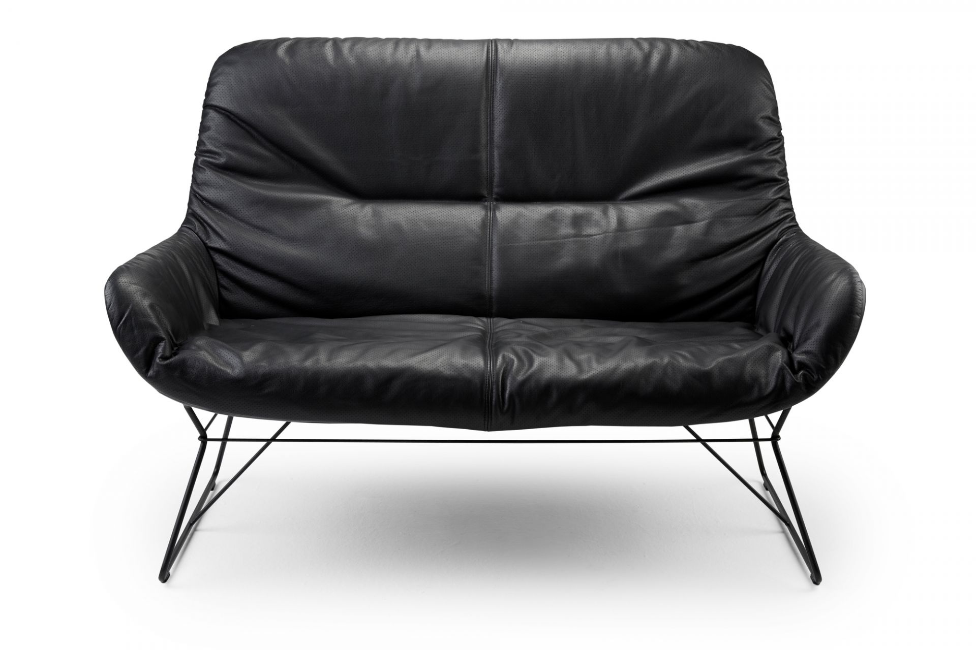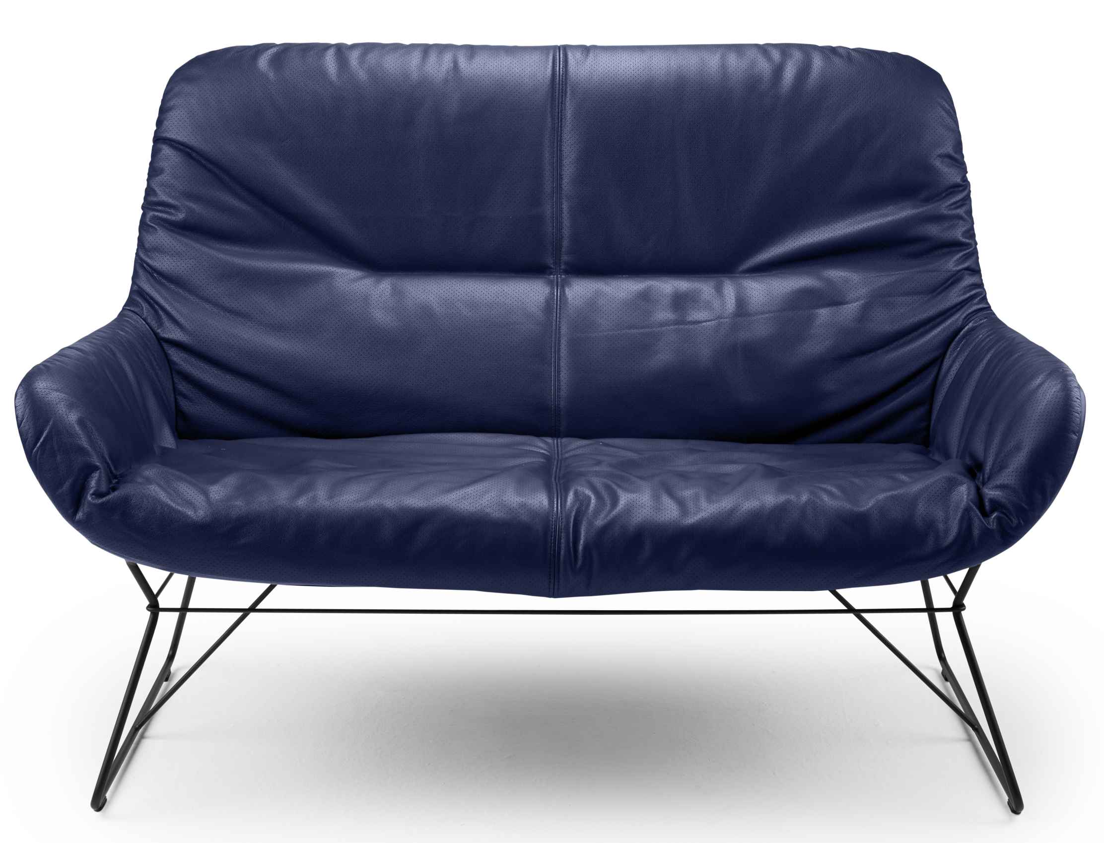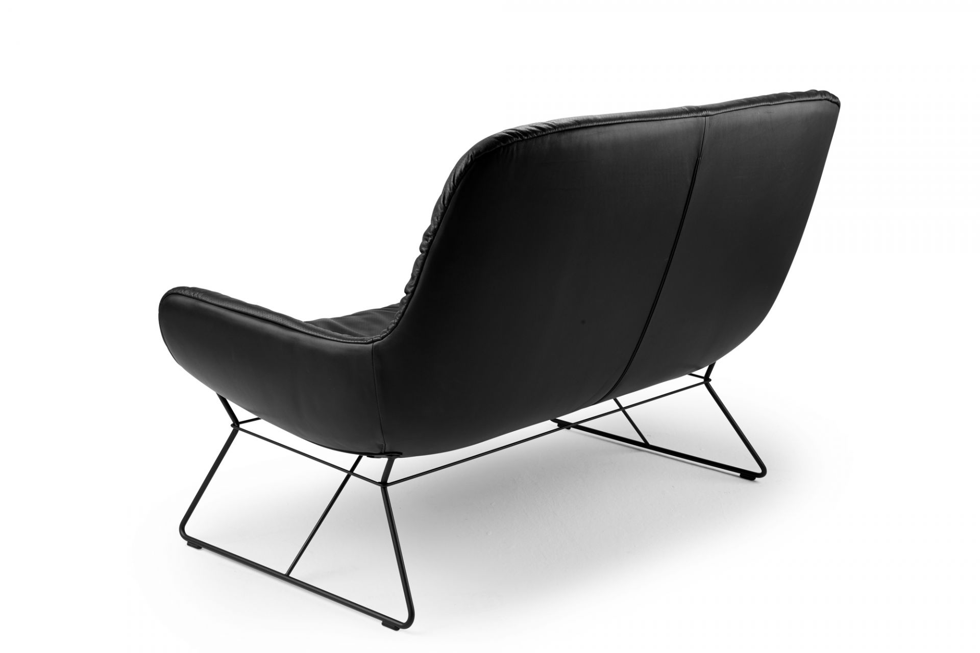 Leya ist 88 cm hoch, 190 cm breit und 85 cm tief – bei einer Sitzhöhe von 42 cm. Die Höhe der Armlehne ist 52 cm. Sie verfügt über ein schwarzes Drahtgestell und kann mit verschiedenen Leder/Stoffbezügen gewählt werden: