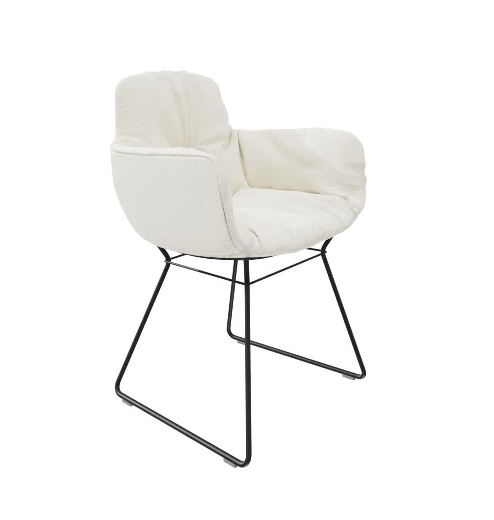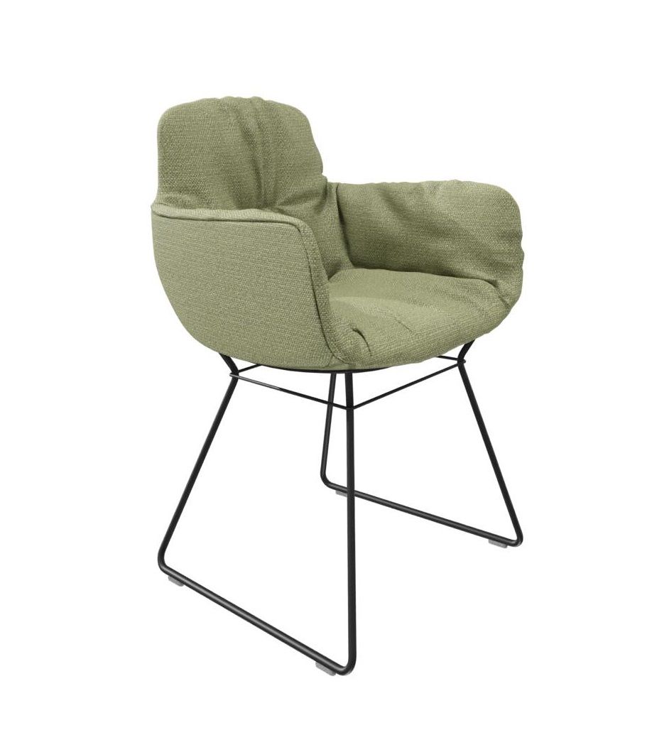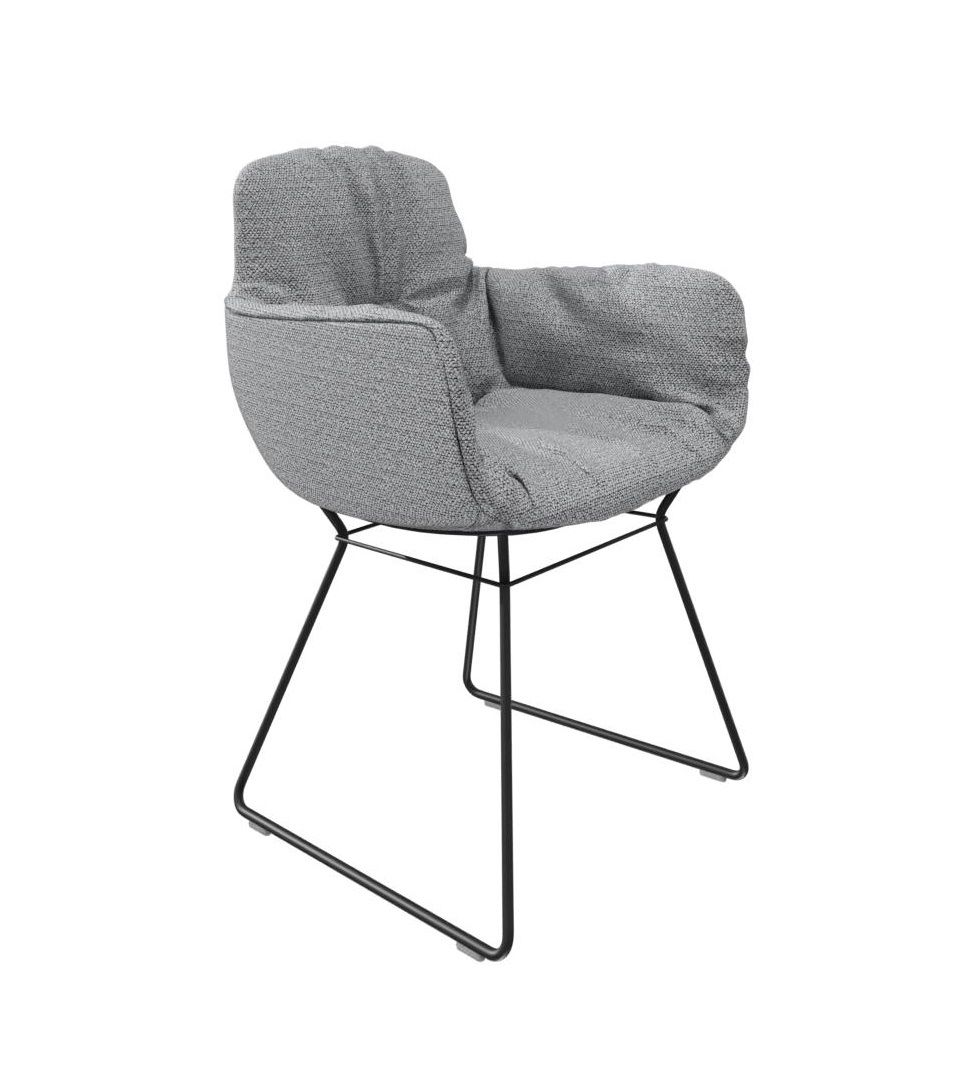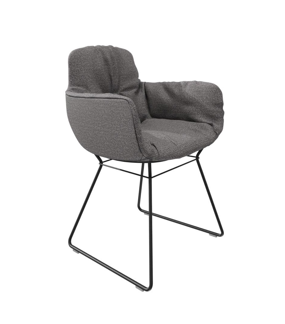 Auf diese weiche Polsterung setzt man sich doch gern – der Leya von Freifrau Sitzmöbelmanufaktur vereint ein filigranes Drahtgestell mit einer bequemen und straff gepolsterten Außenschale.