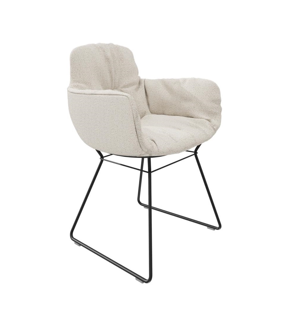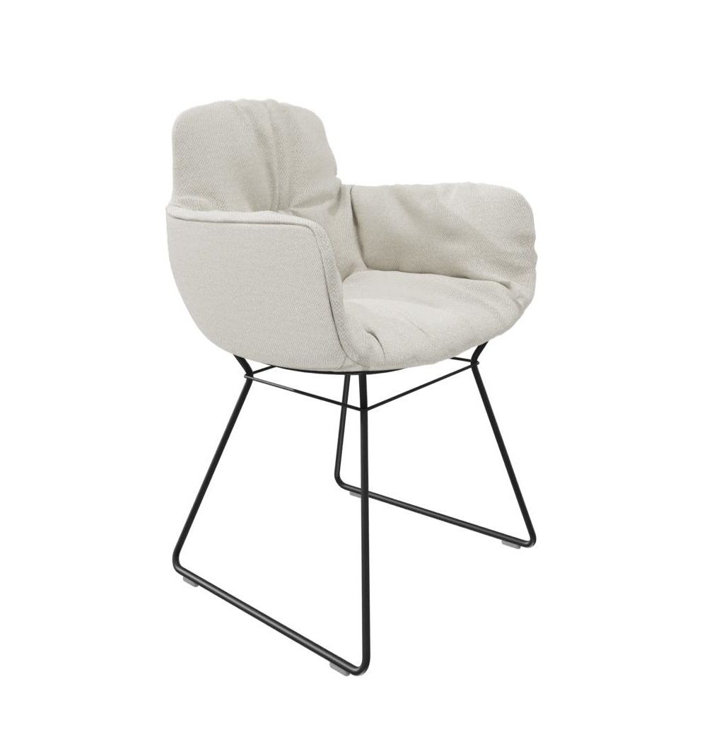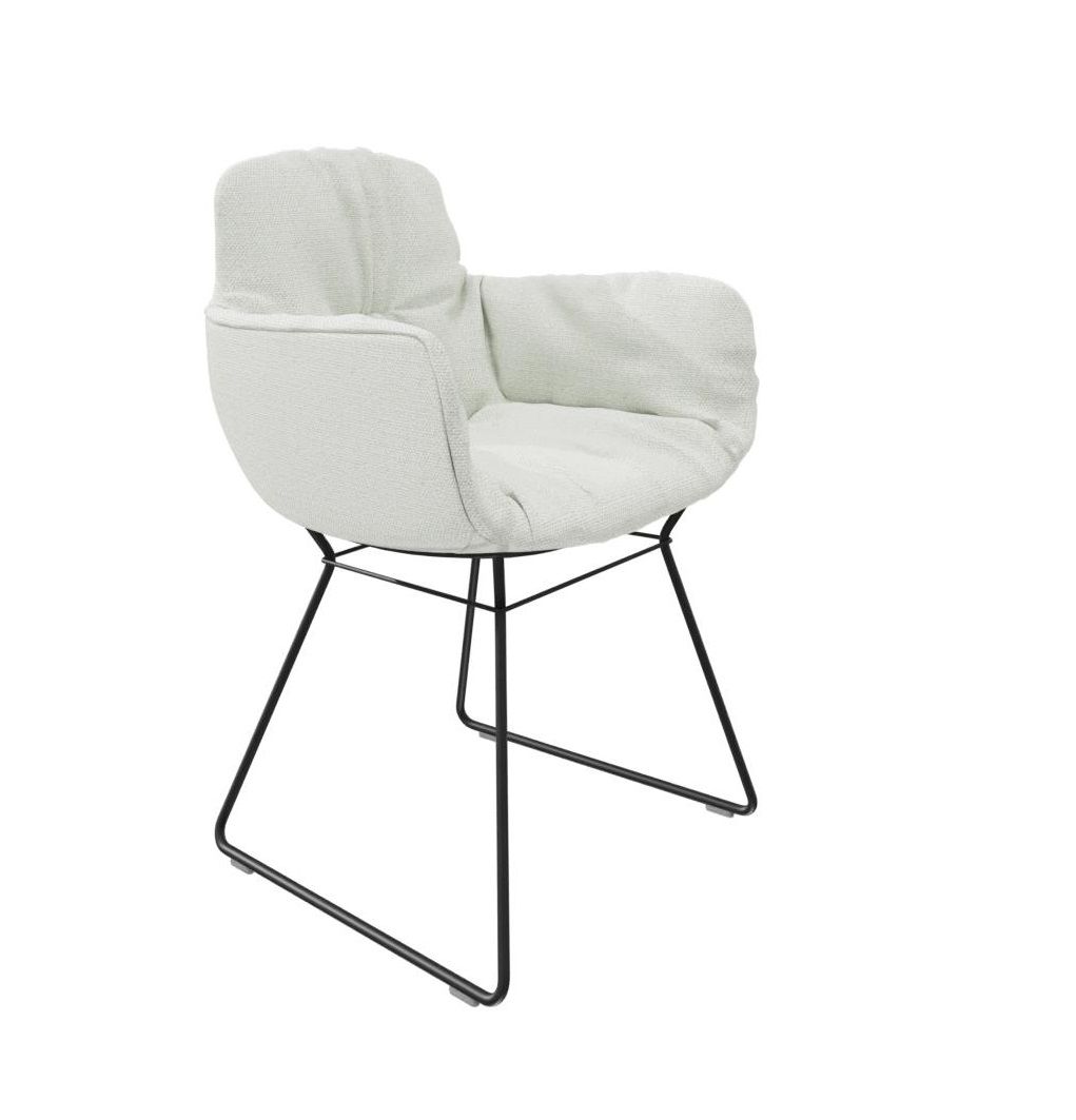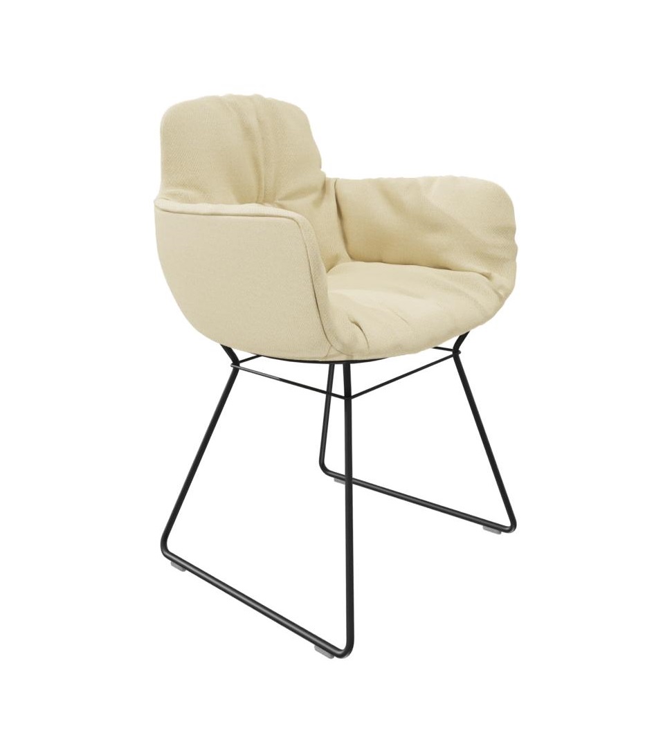 Auf diese weiche Polsterung setzt man sich doch gern – der Leya von Freifrau Sitzmöbelmanufaktur vereint ein filigranes Drahtgestell mit einer bequemen und straff gepolsterten Außenschale.