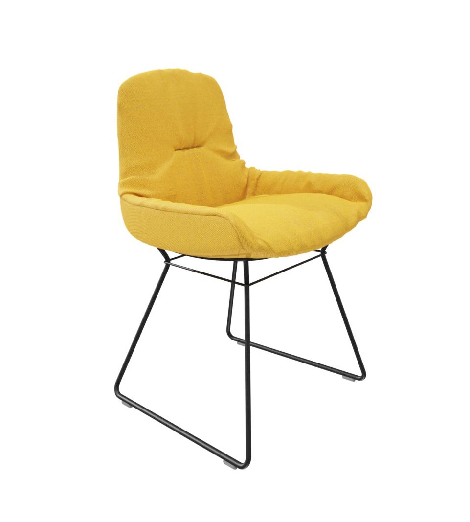 Auf diese weiche Polsterung setzt man sich doch gern – der Leya von Freifrau Sitzmöbelmanufaktur vereint ein filigranes Drahtgestell mit einer bequemen und straff gepolsterten Außenschale.