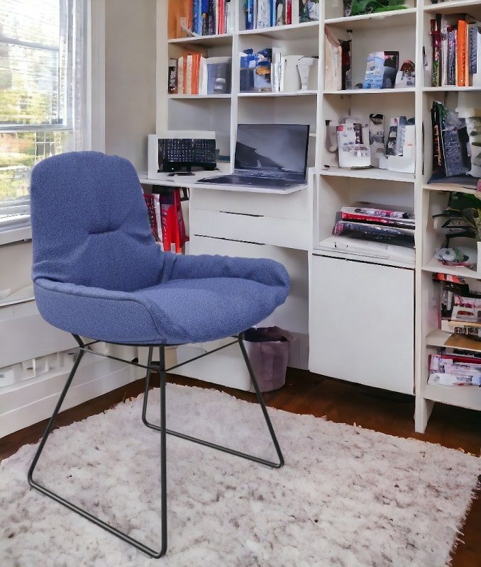 Leya ist 85 cm hoch, 55 cm breit und 57 cm tief – bei einer Sitzhöhe von 47 cm. Er verfügt über ein schwarzes Drahtgestell und ist in folgenden Stoffbezug erhältlich:
