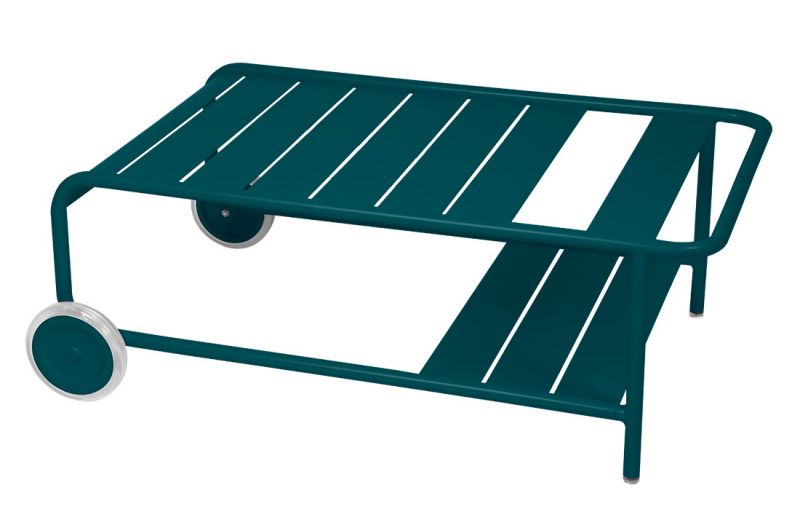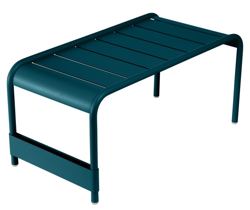 Praktischer Helfer im Freien: Der kleine niedrige Tisch aus der Luxembourg Kollektion von Frédéric Sofia für Fermob kann auch als Fußhocker dienen.