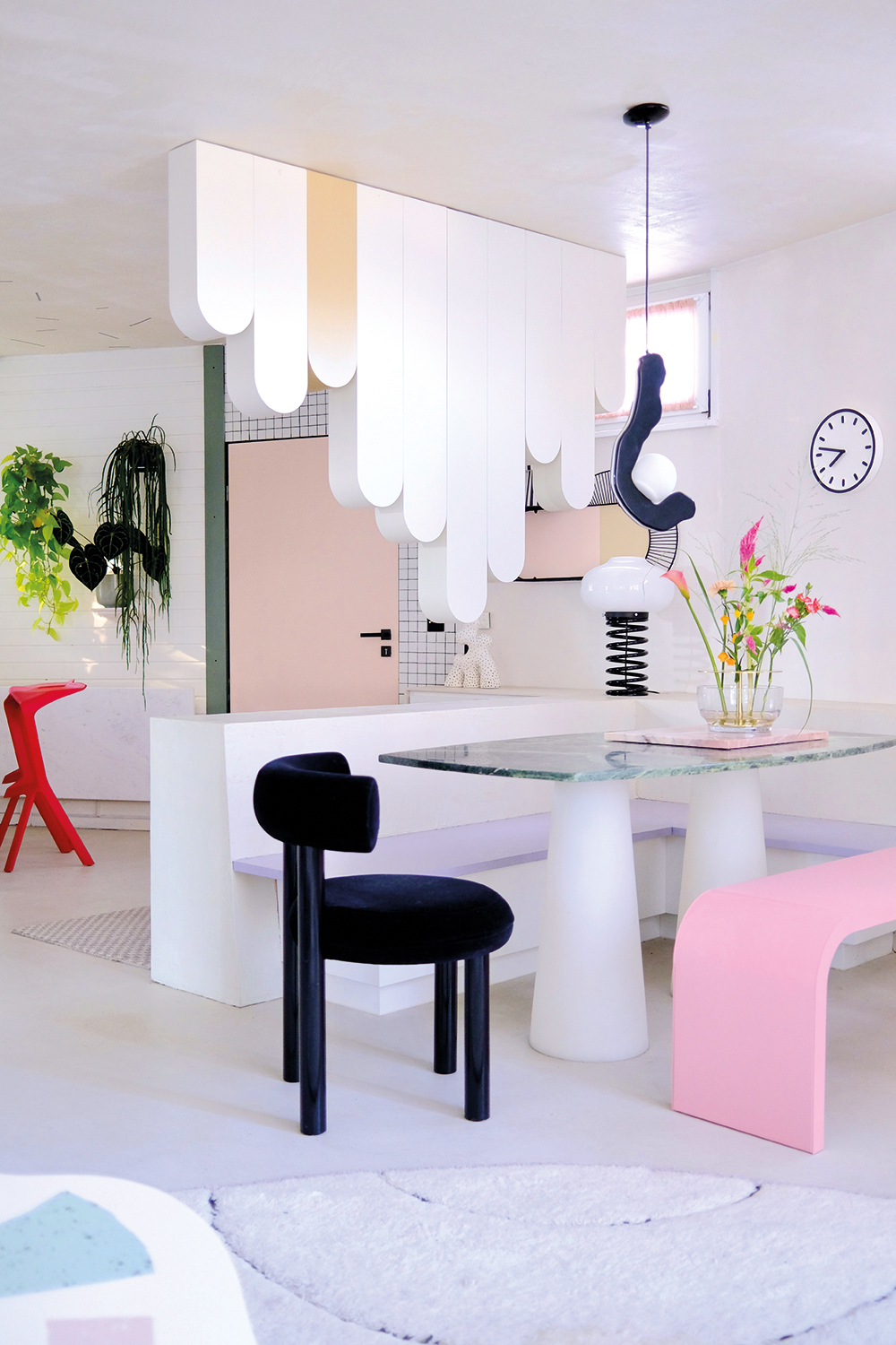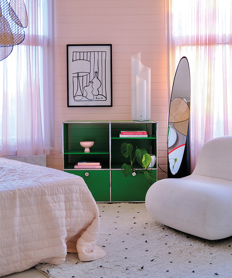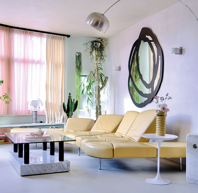 2022 warst du Teil unserer Italien Woche auf Instagram und der SamSon Chair von Magis durfte bei dir einziehen. Hast du eine besondere Verbindung zu italienischem Design? Oh ja, vermutlich begeistert mich kein Design der Welt so sehr, wie das italienische. Das erkennt man besonders an unserem Wohnzimmer: das Flap Sofa von Francesco Binfaré für Edra habe ich zur Flos Arco, der Shogun Tavolo von Mario Botta für Artemide und einem vintage Marmor Coffeetable von Ettore Sottsass für Knoll International kombiniert. Darüber hängt der Sweet Spiegel von Paola Navone für Gervasoni. Am meisten inspiriert mich das italienische Design der 80er und des Memphis.