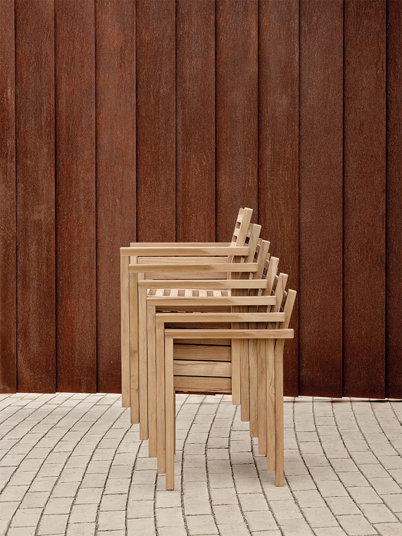 Die AH Outdoor-Serie von Alfred Homann zeichnet sich durch eine strenge Ästhetik gepaart mit weichen Formen aus. Dies zeigt sich in den schön geschwungenen Armlehnen, Rückenlehnen und Sitzen, die von den erfahrenen Handwerkern von Carl Hansen & Son sorgfältig von Hand poliert werden, um eine weiche und fühlbare Oberfläche zu erzielen. Alle Tische und Stühle können bei Nichtgebrauch zur einfachen Aufbewahrung gestapelt werden.
