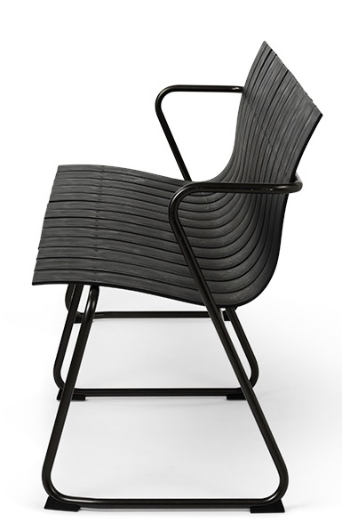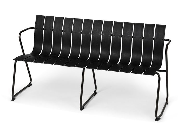 Aus was die schöne Ocean Bench besteht? Zu einem großen Teil aus dem, was unschöner Weise so im Meer umherschwimmt, wie ausrangierte Fischernetze und Hartkunststoff. Satte 3,2 kg davon stecken in einer einzigen Ocean Bank! Das Gestell wird aus brüniertem Stahl gefertigt.
