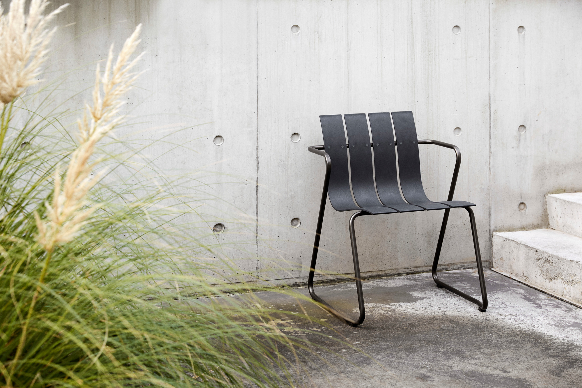 Aus was der schmucke Ocean Chair besteht? Aus 80 % Oceanix! Noch nie davon gehört? Oceanix ist das, was im Meer umherschwimmt, dort aber nicht sein sollte, sprich, Plastikmüll. In einem einzigen Ocean Stuhl steckt davon 960 Gramm – ausrangierte Fischernetze und recycelter Hartkunststoff. Dies entspricht einer CO2-Einsparung von satten 1,6 Kilogramm. Das Gestell wird aus brüniertem Stahl gefertigt.