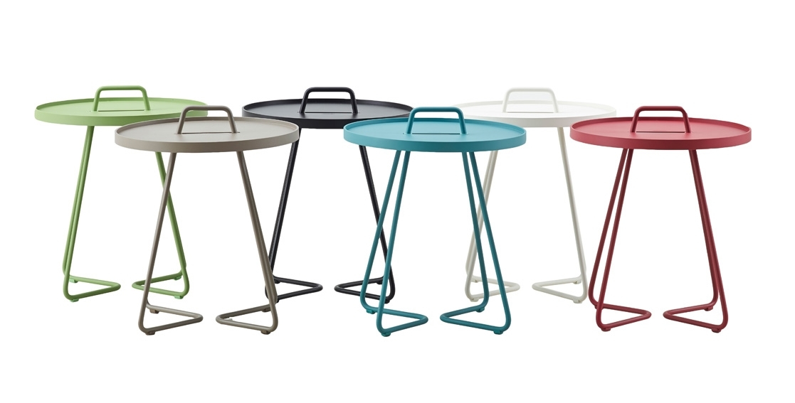 Farbenfroher Outdoor Fun: Mit dem kleinen Beistelltisch On-The-Move von Cane-Line holen Sie sich einen fröhlichen und praktischen Begleiter nach Hause.